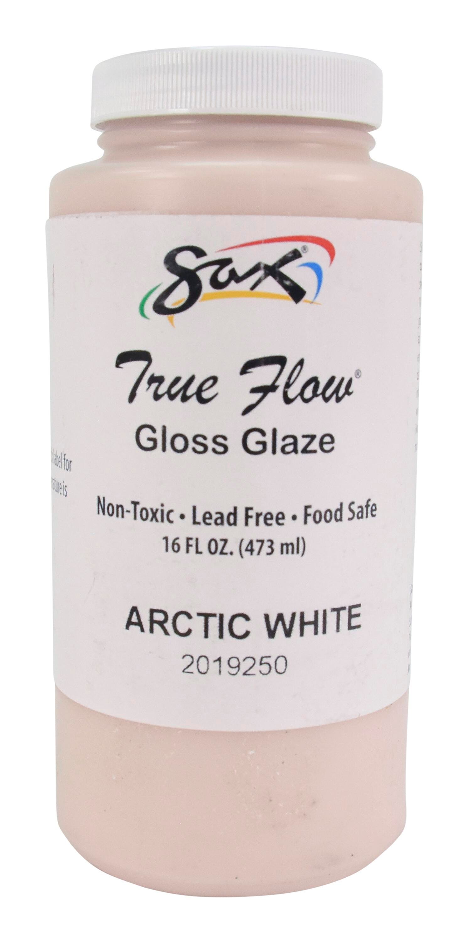 Sax gloss glaze in Arctic White is a high-quality glazing paint that's non-toxic. The translucent glaze glides smoothly on bisque so no brush strokes will appear in the fired finish. Complete pottery or create new shades by mixing our foundation glazes with each other. During application, the glaze may be a different color and will change to the desired look after the required kiln firing. The color fades to clear when fired at cone 6.Features