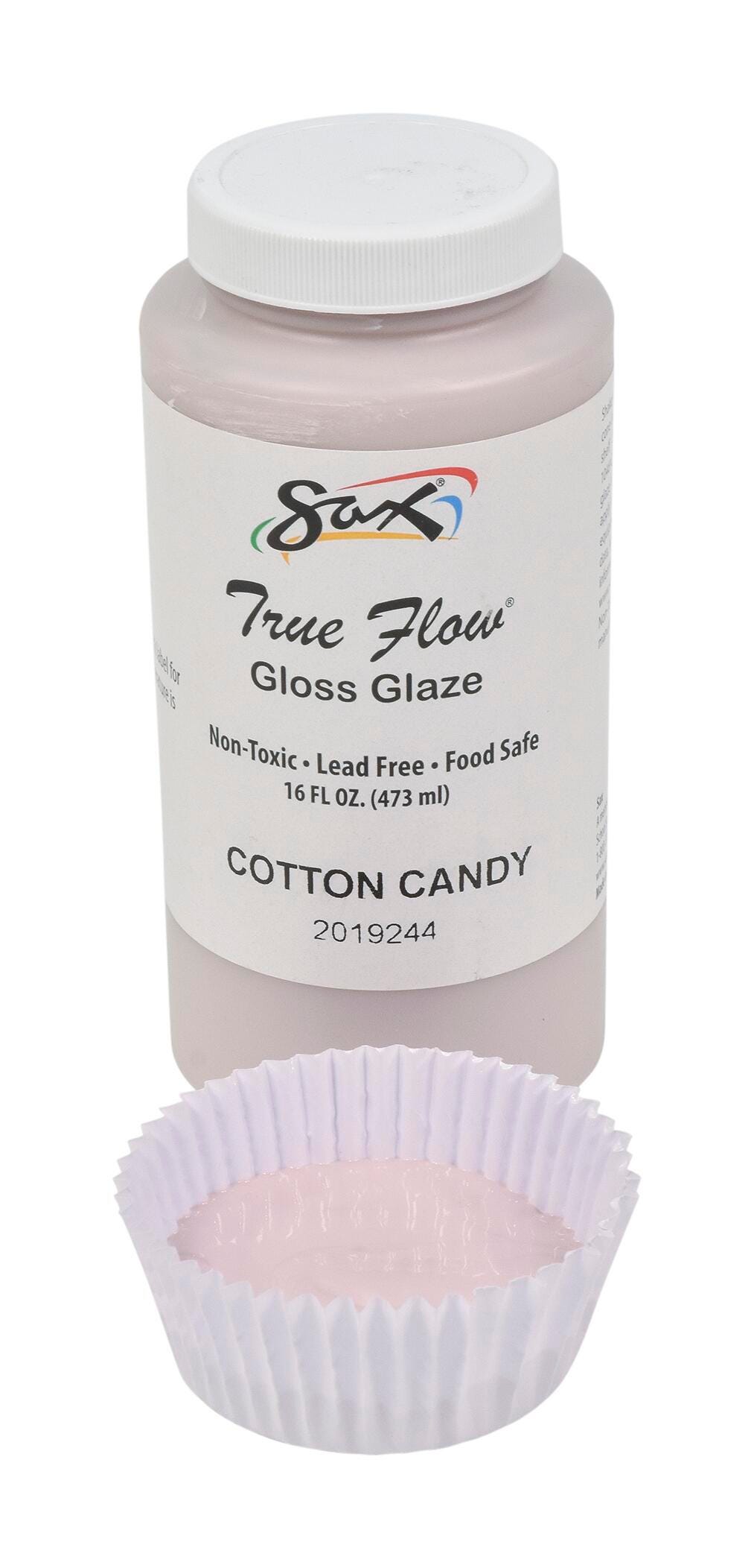 Sax gloss glaze in opaque Cotton Candy is a high-quality glazing paint that's non-toxic. The high gloss glaze glides smoothly on bisque so no brush strokes will appear in the fired finish. Complete pottery or create new shades by mixing our foundation glazes with each other. During application, the glaze may be a different color and will change to the desired look after the required kiln firing. The color nearly fades away when fired at cone 6. This high gloss finish does not need to be clear glazed.