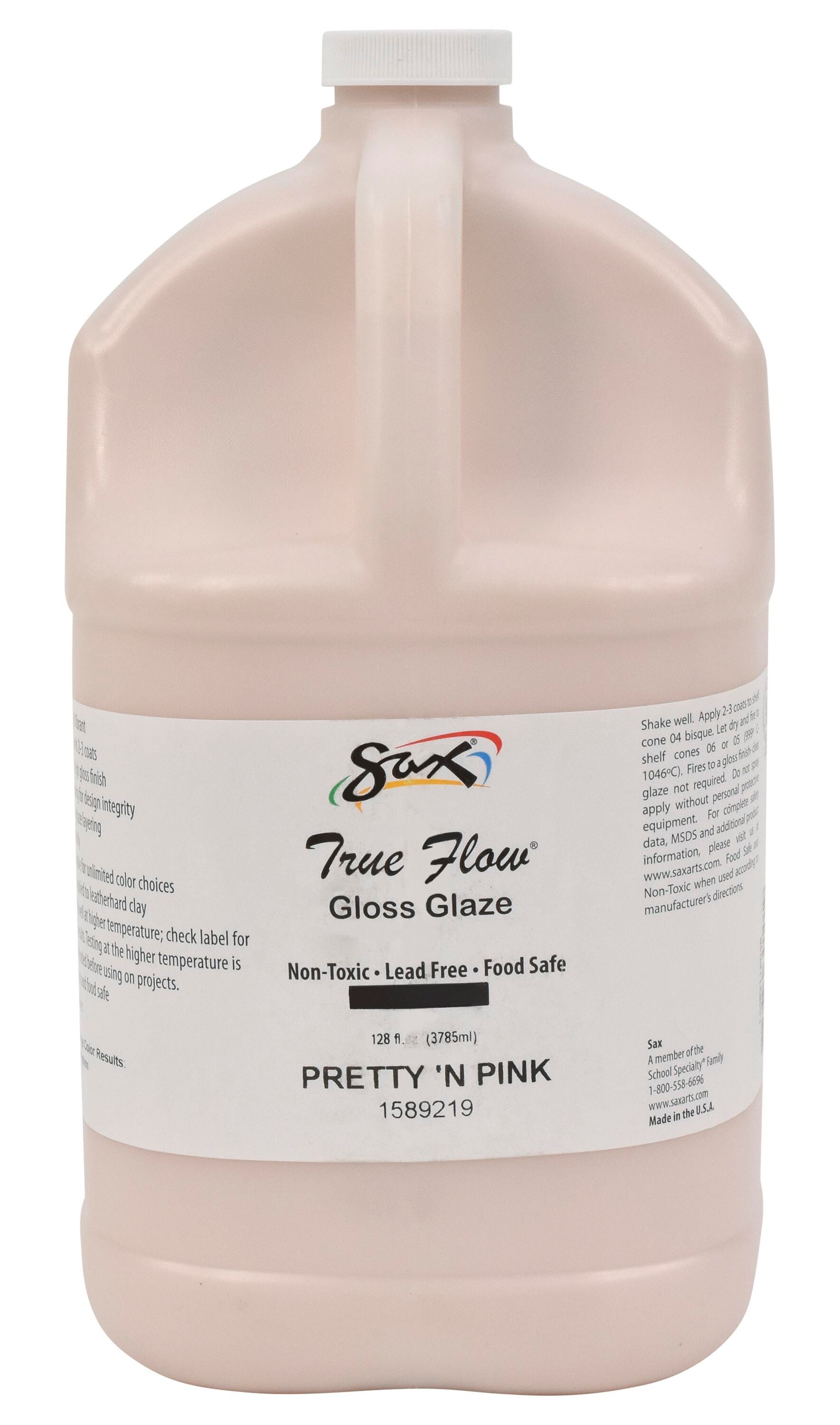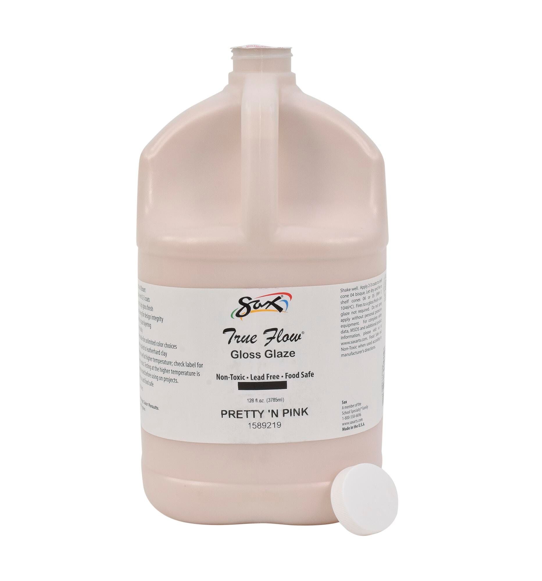 The Sax gloss glaze in semi-translucent Pretty N' Pink is a high-quality glazing paint that's dinnerware safe when fired to cone 06-05. During application, the semi-transparent glaze may be a different color and will change to the desired look after the required kiln firing. The color will lighten when fired at cone 6.