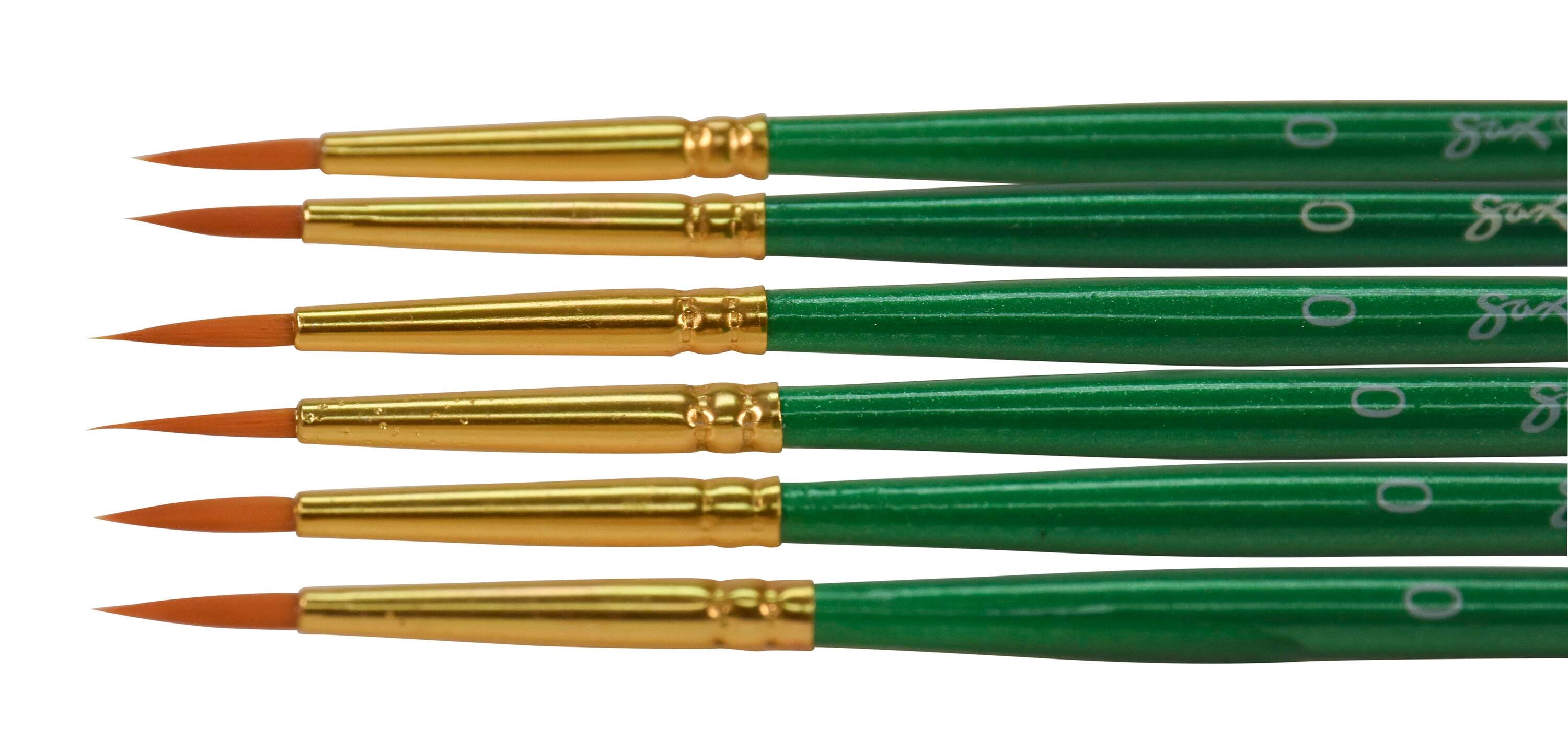 • Sax Optimum Golden Synthetic Taklon Paint Brushes, Round Type, Short Handle, Size 0, Set of 6