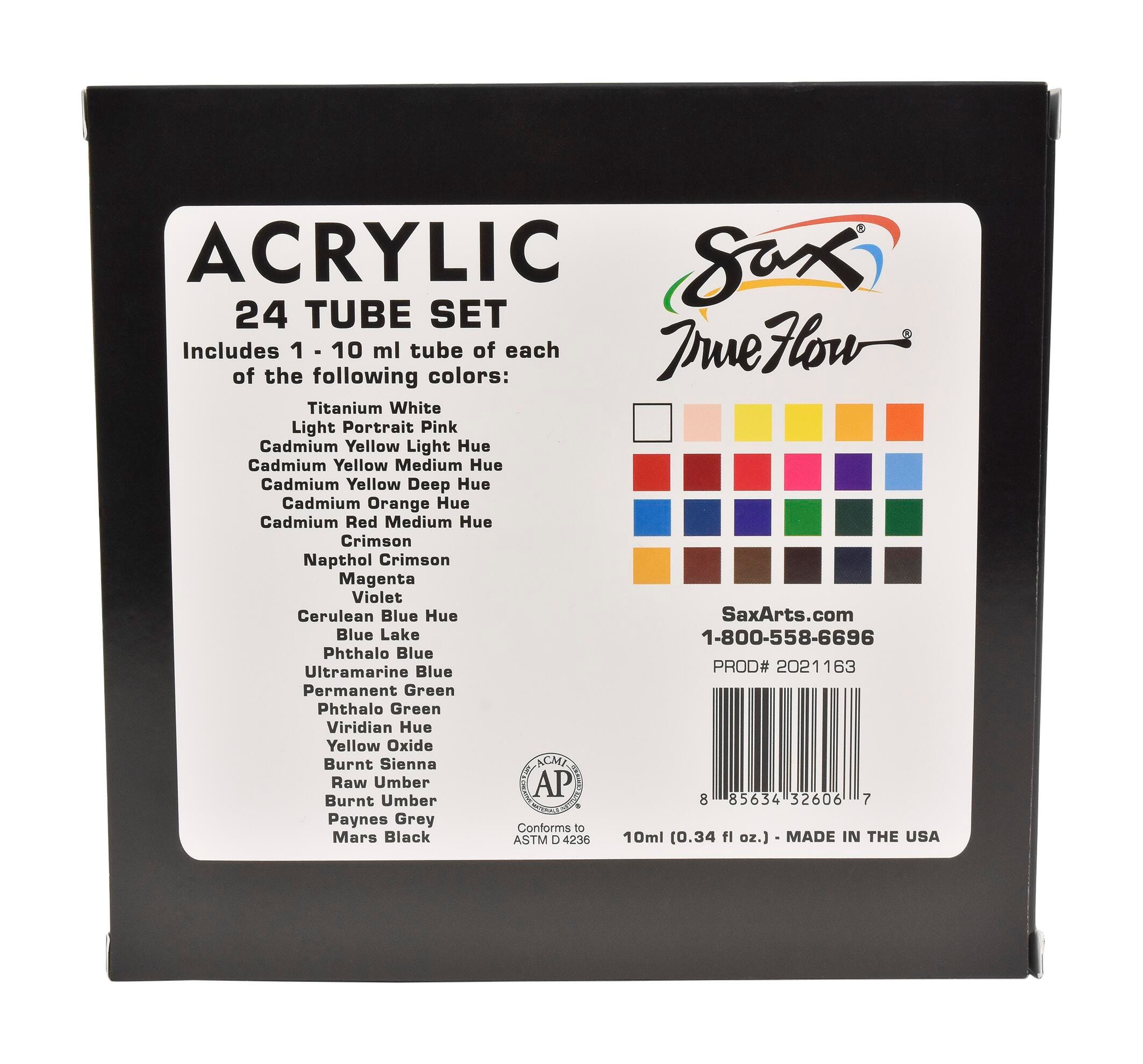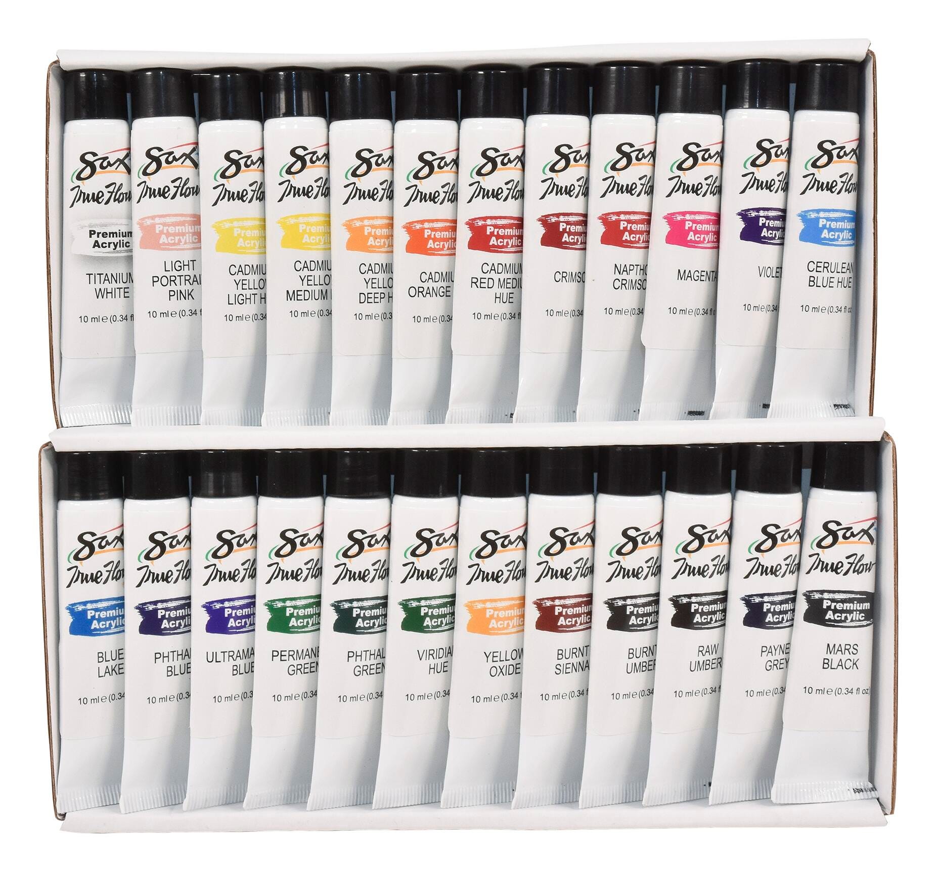 Sax Premium Acrylic Paint, Assorted Colors, 0.34 Ounce Tubes, Set of 24