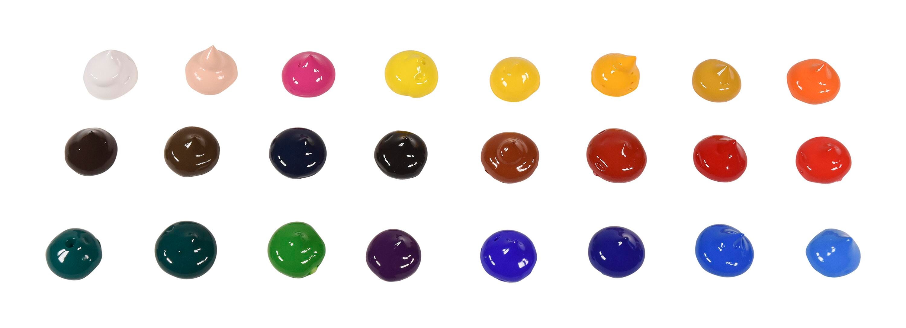 Includes 24 Paints, 1 of Each Color: Titanium White, Cadmium Yellow Medium Hue, Cadmium Red Medium Hue, Crimson, Napthol Crimson, Phthalo Blue, Permanent Green, Phthalo Green, Yellow Oxide, Burnt Sienna, Mars Black, Cadmium Yellow Light Hue, Blue Lake, Cadmium Orange Hue, Magenta, Violet, Cerulean Blue Hue, Light Portrait Pink, Viridian Hue, Burnt Umber, Paynes Gray, Cadmium Yellow Deep Hue, Ultramarine Blue, Raw Umber