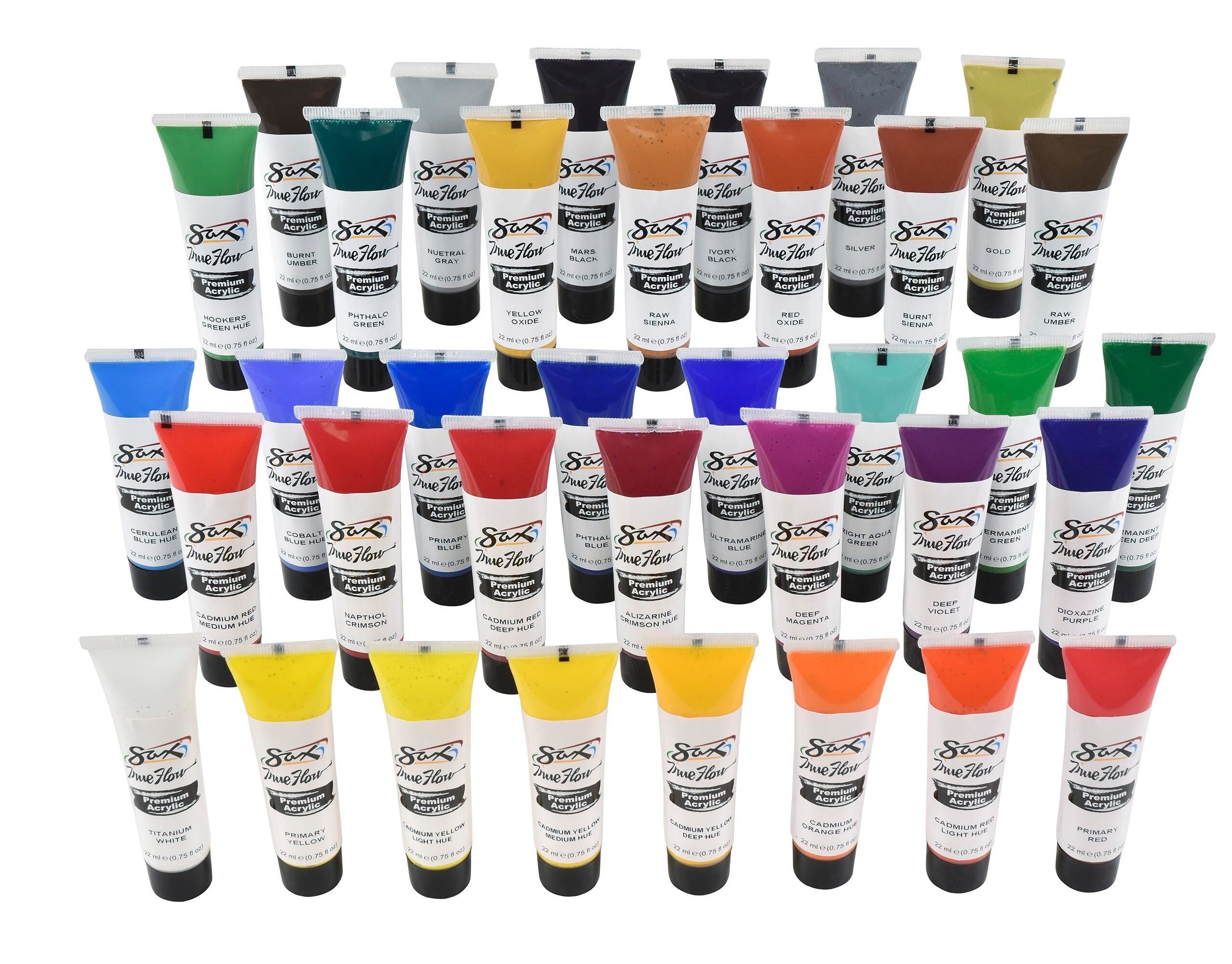 Sax Premium Acrylic Paint, Assorted Colors, 0.75 Ounce Tubes, Set of 36