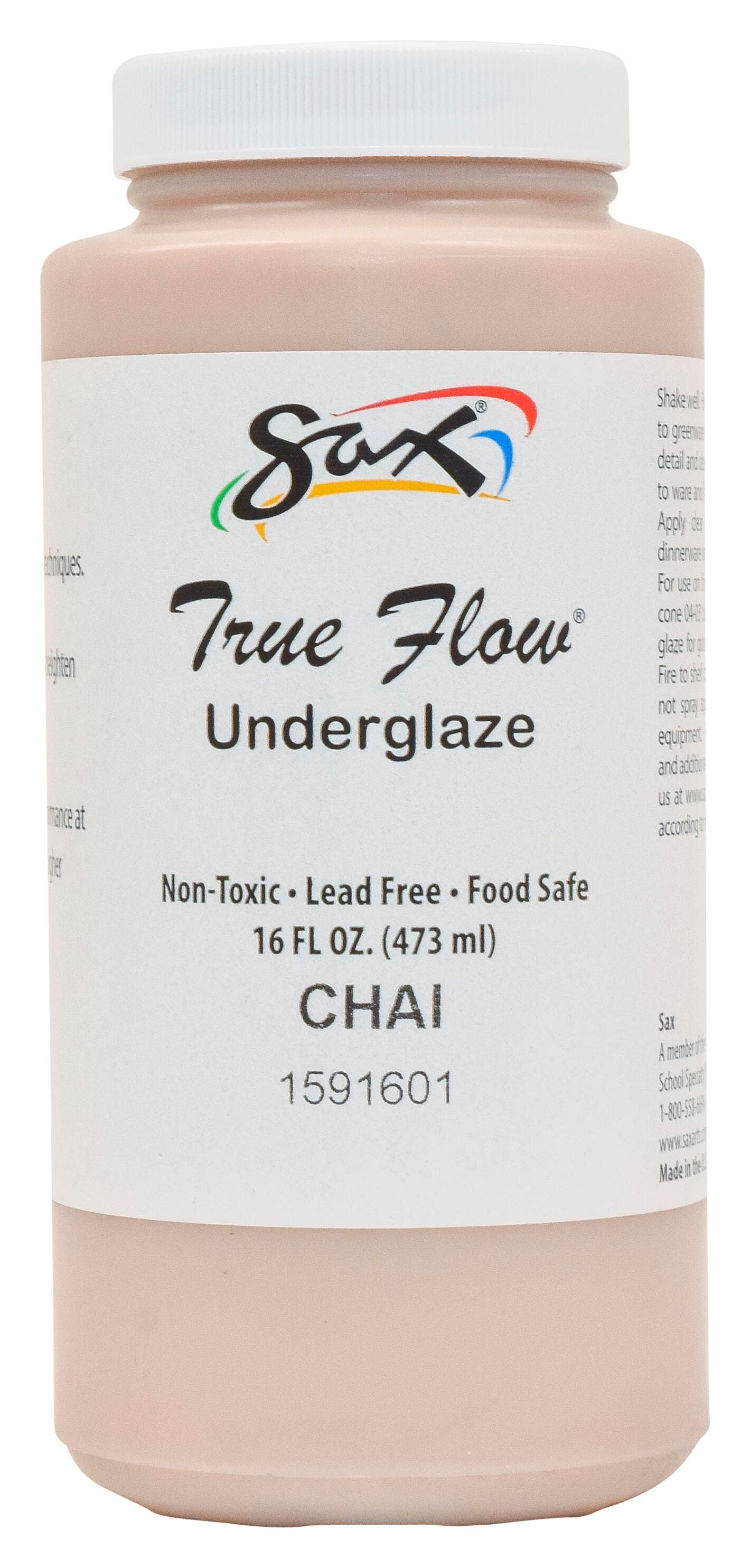 Sax Chai underglaze paint comes in a concentrated opaque liquid color. Decorate pottery with this glazing paint that's ready for use on clay, greenware, and bisque. The color may be a different shade during application and will change to the desired look after the required kiln firing. This painting medium's color slightly dulls when fired at cone 6. Our high-quality underglaze has a matte look after firing and can be transformed to a shiny, rich glaze appearance with a transparent glaze coating on top.