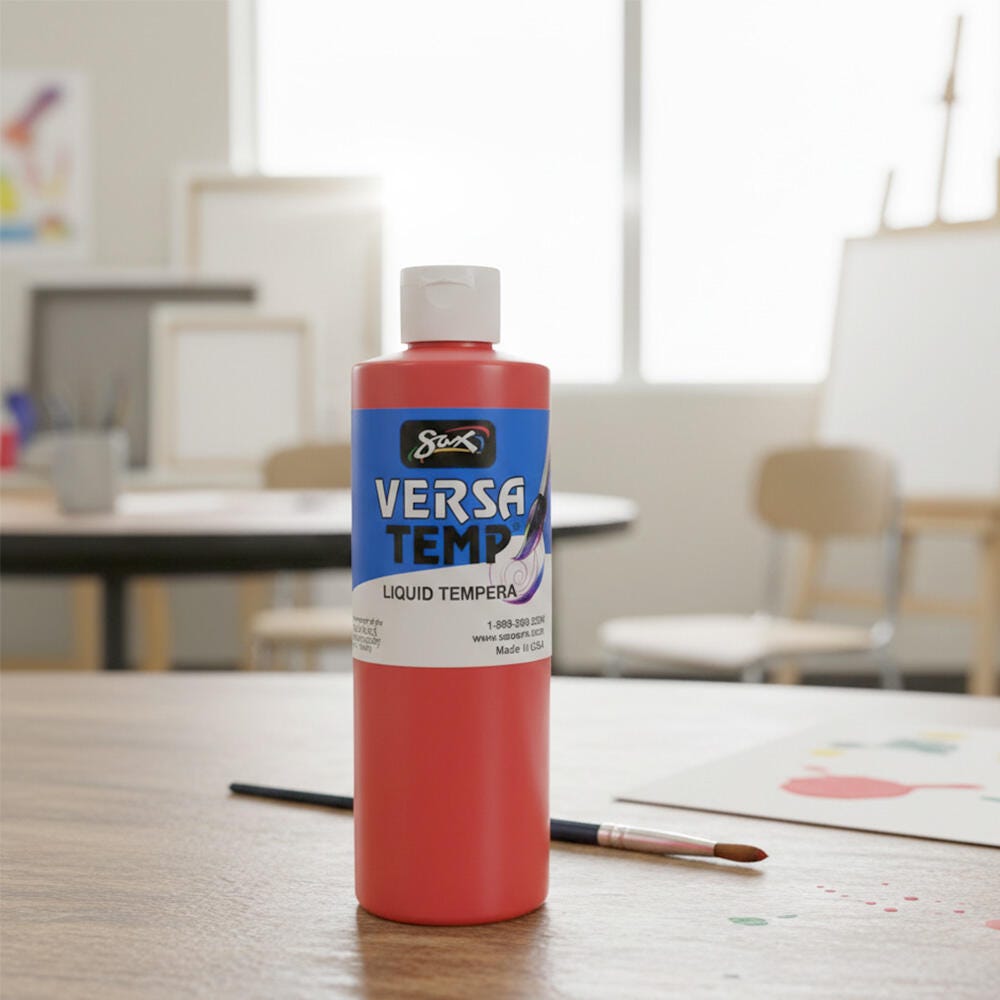 Sax Versatemp heavy-bodied tempera paint in primary red produces bold, vibrant results. Foster creativity with a paint that resists cracking and chipping. The convenient pint bottle is easy to pour and store, and is perfect for sharing in the classroom. Complete art projects, posters, and signs that stand out with one shade or craft new hues by mixing. The heavy formula is easy to apply and mix.
