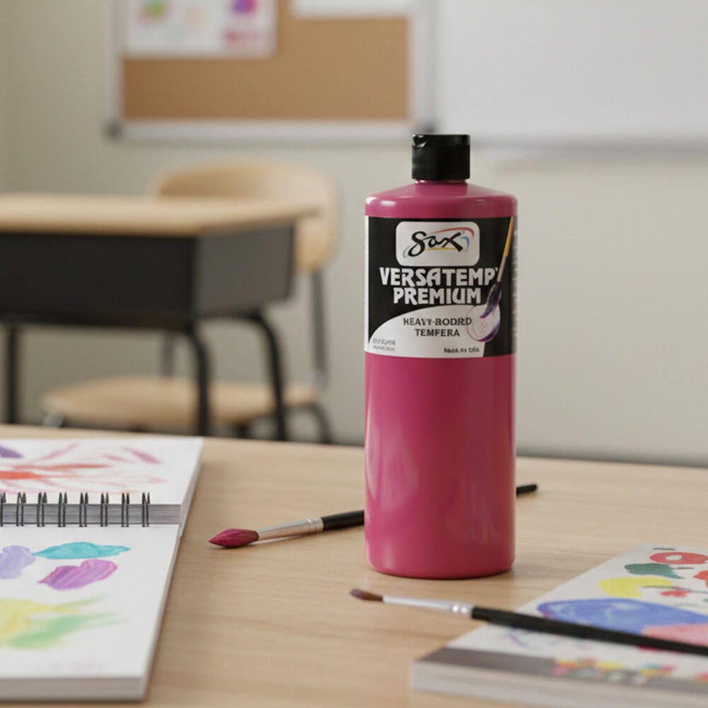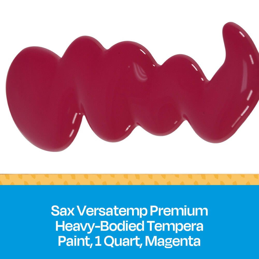 Sax Versatemp premium heavy-bodied tempera paint in magenta is perfect for artists and students. Enjoy richer, brighter, and more intense colors with a thick consistency that provides superior brush film build and excellent color mixing properties. This tempera is perfect for block and screen printing as well as signs, sets, and backdrops. Complete projects, posters, and unique paintings with this high-quality painting medium in a convenient 1 quart bottle. Stock up and save with our tempera paints.
