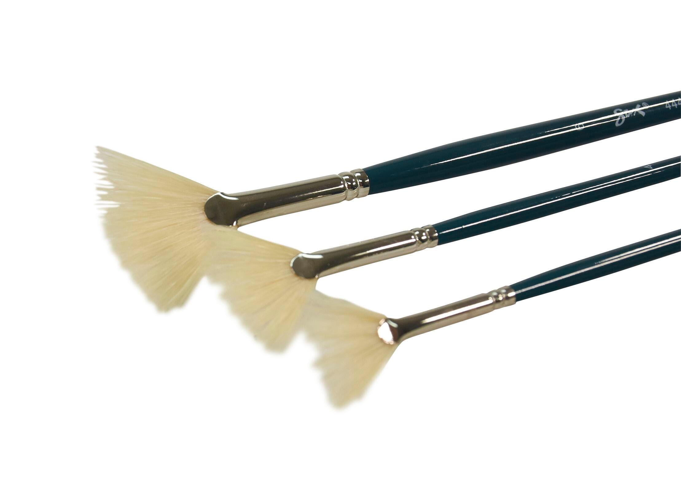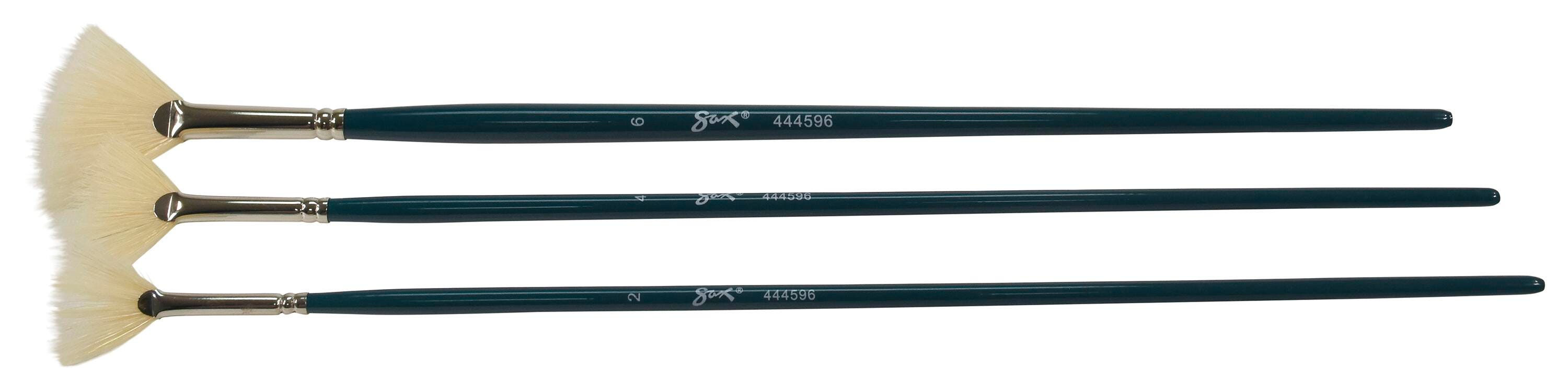 Sax White Bristle Fan Blender Set, Fan Type, Long Handle, Assorted Sizes, Set of 3