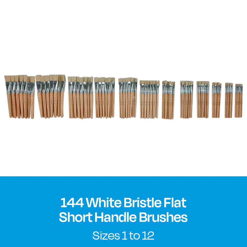 Sax White Bristle Wooden Paint Brushes, Flat Type, Short Handles, Assorted Sizes, Set of 144