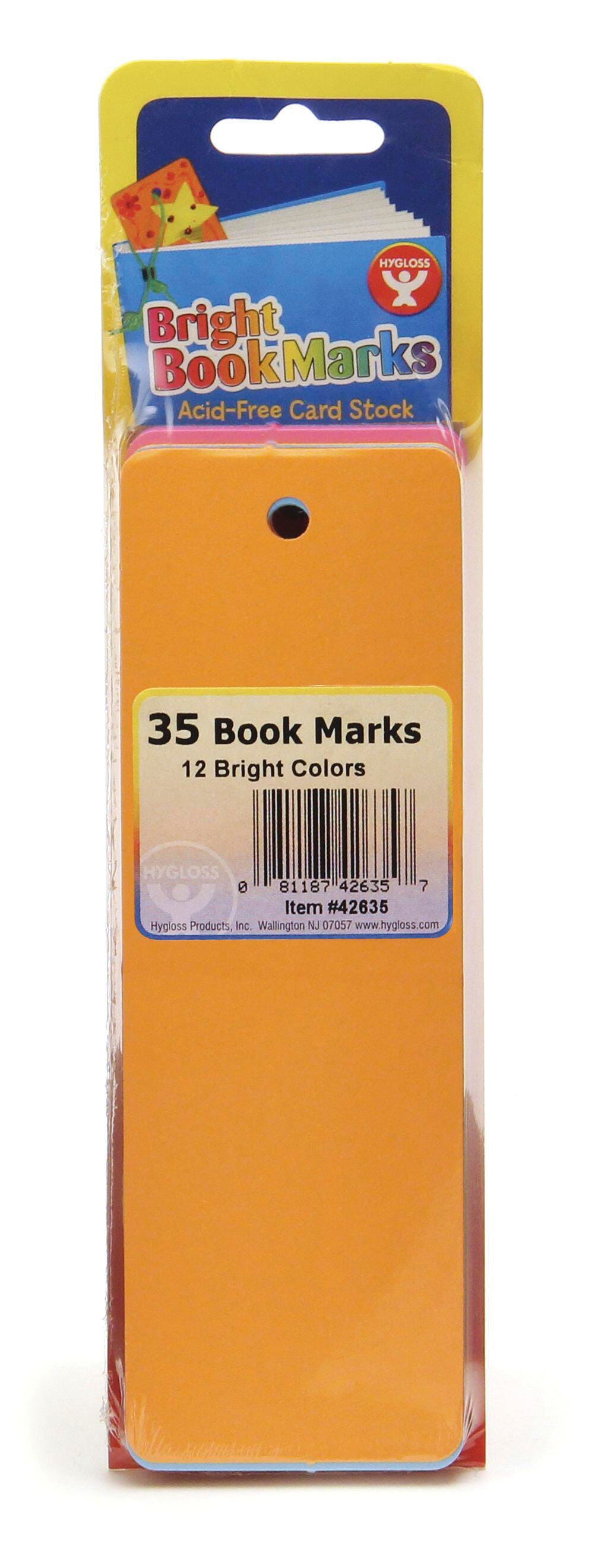 Hygloss Bright Bookmarks make reading more fun. Kids can personalize the bookmarks for themselves or at home craft projects for Mother's Day, Father's Day or any other event. Round cornered fade-resistant bookmark is acid-free and features a center hole for yarn. Measures 2 x 6 inches. Assorted colors, pack of 35.