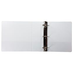 - D-ring binder has rings mounted on back lid and 2 sturdy pockets inside for paperwork storage
