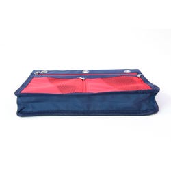 The School Smart Red Binder Pouch provides a handy storage solution for your classroom and office essentials. The binder pouch features three 1/2 inch reinforced grommets and is designed to fit into 2 or 3-ring binders. It has a large zipper pocket and two smaller mesh zipper pockets that easily store pens, pencils, erasers, notes, and more. The 9 x 11 inch pouch expands 1-1/2 inches to fit a variety of supplies of different sizes.Features