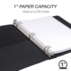 This Contrast-Stitched Leather Binder from Samsill uses beautifully crafted, bonded leather to create a highly durable, stylish, and versatile portfolio binder. The black leather-grain exterior is complemented with contrasting cream stitching for an extra touch of style. The binder also features a saddle-stitched spine, a concealed-rivet ring construction, and 1 inch round rings that hold up to 200 sheets. Store important documents in the two interior pockets. This premium organizational solution is perfect for professionals, educators, and students looking to make an impression.Features