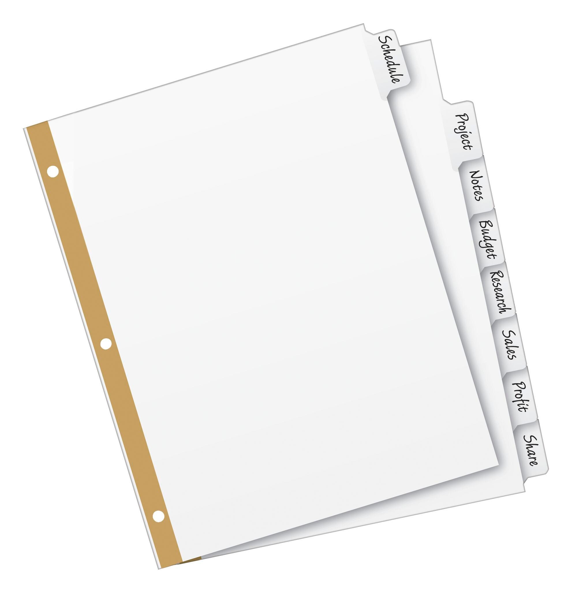 Avery 23078 Big Tab Write and Erase Dividers, 8 Tab, 8-1/2 x 11 Inches, White