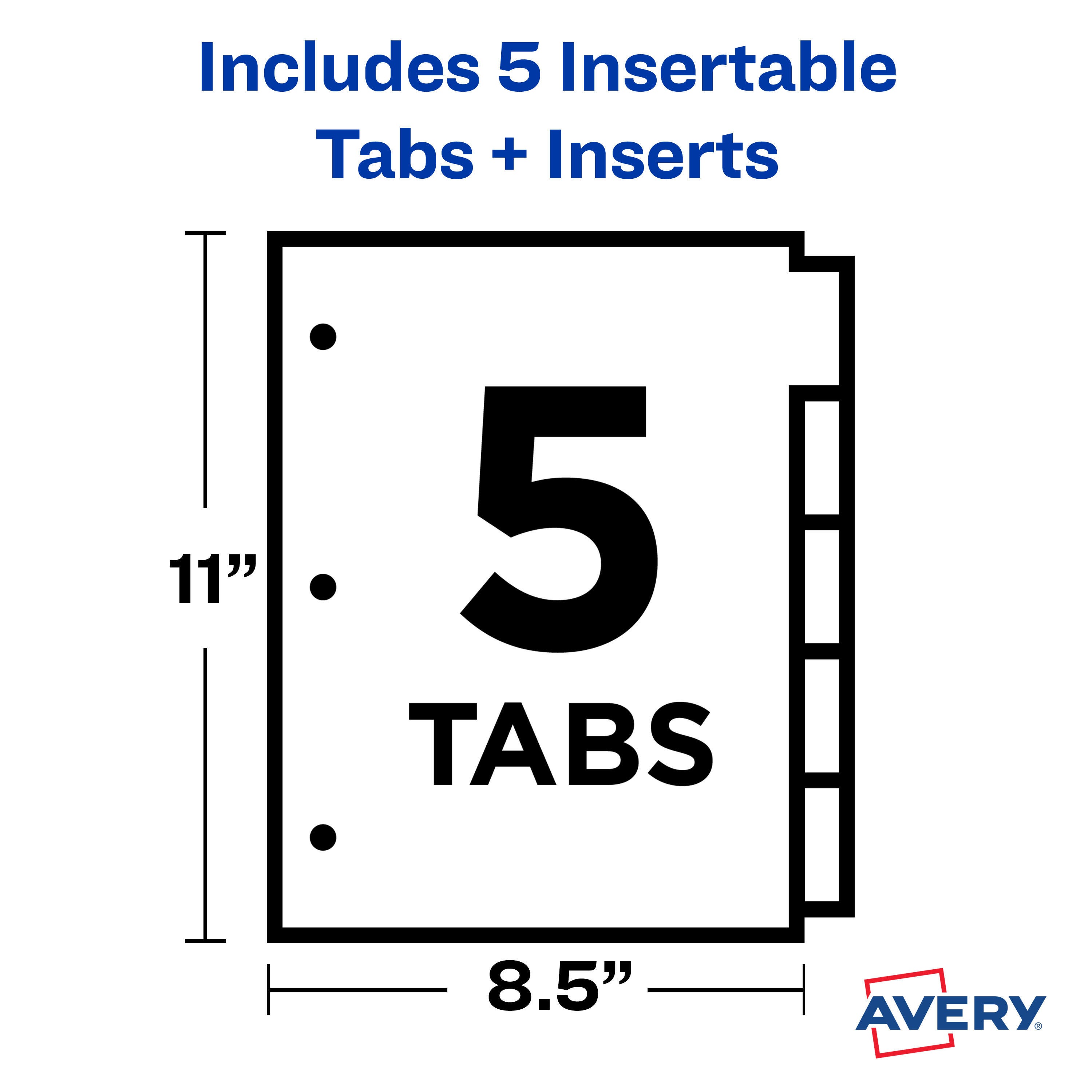 Avery Plastic Insertable Dividers, 5 Tab, Multi-Color