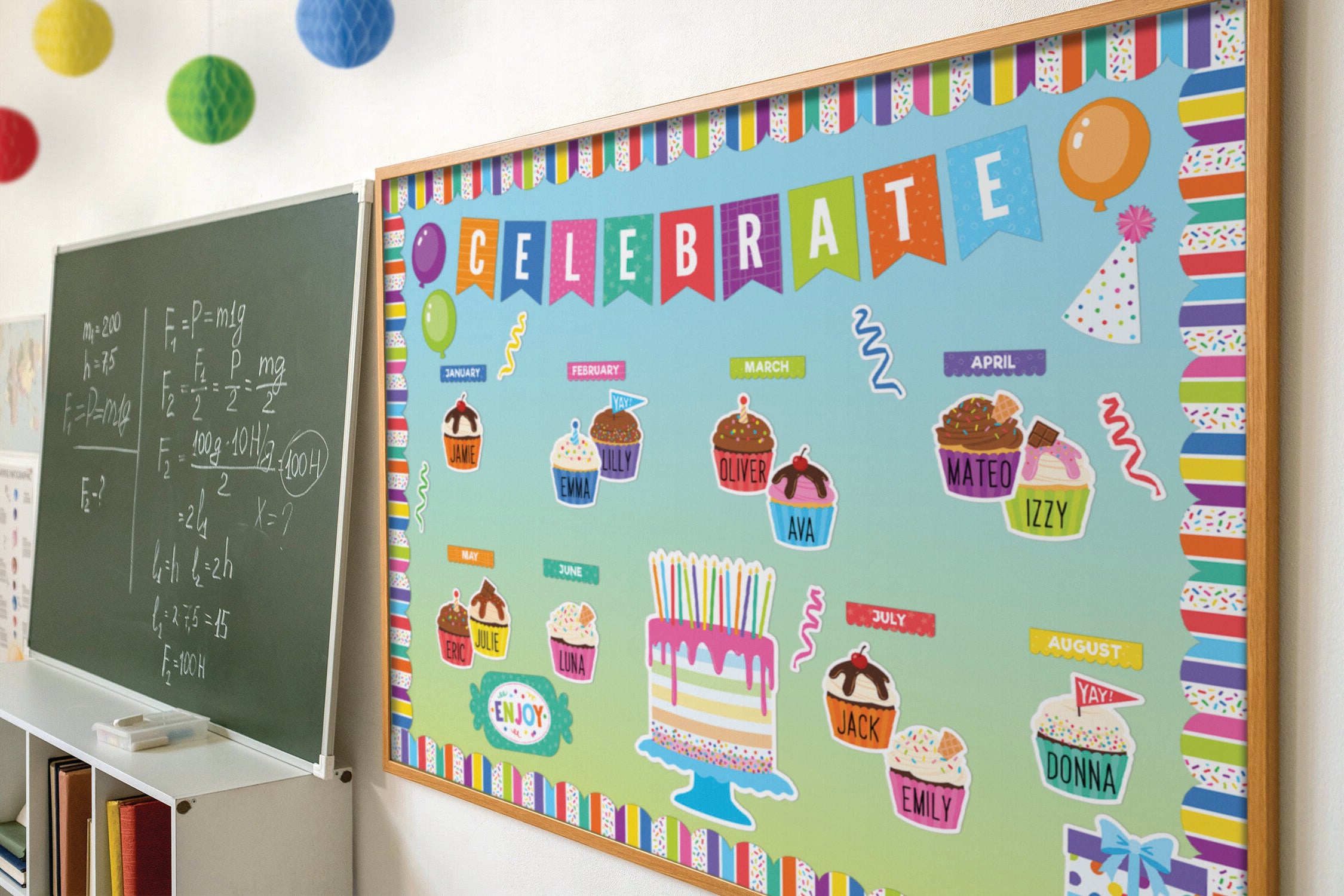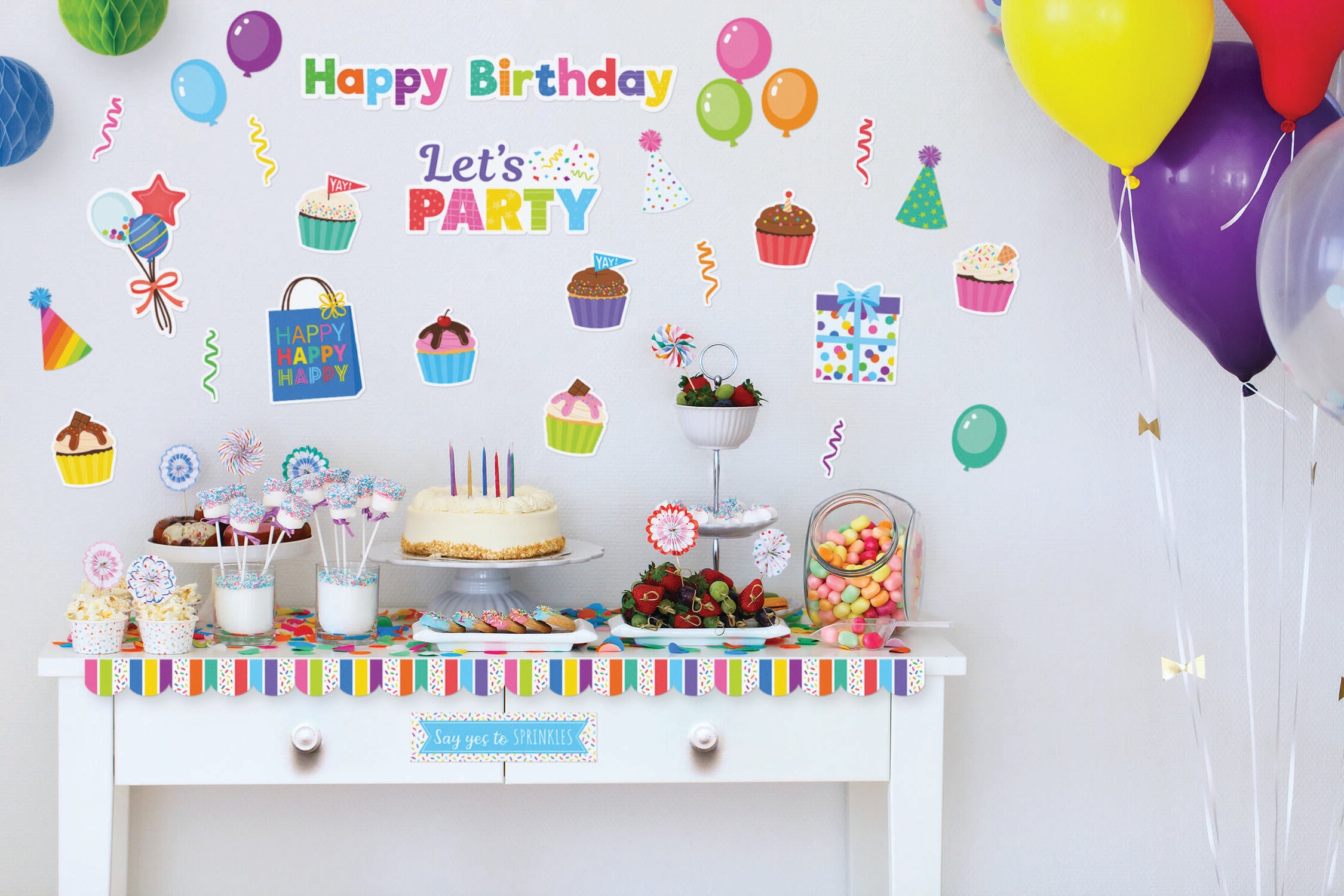 All-in-one set provides everything you need to liven up your space, from cute cupcake accents to hanging paper balls
