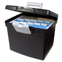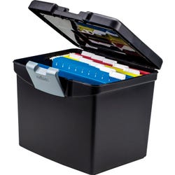 Say goodbye to overstuffed bins and cabinets! File Storage Boxes with XL Storage Lids from Storex give you ample space for paperwork, hanging file folders, and other supplies. Extra-Large storage compartment lid offers up to 25 percent more space for containing writing pens and pencils, batteries, and other small miscellaneous pieces. Durable, impact-resistant plastic construction and clamping latch ensures every file is safe and water-resistant for on-the- go travels and lugging along to various destinations. Accepts a padlock for even more security (sold separately). Each storage box can hold up to 30 pounds.Features