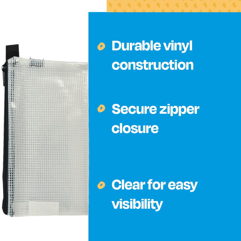 Sax Mesh Tool Case Pouches, 5 x 9 inches, Clear with Black Trim, Pack of 10