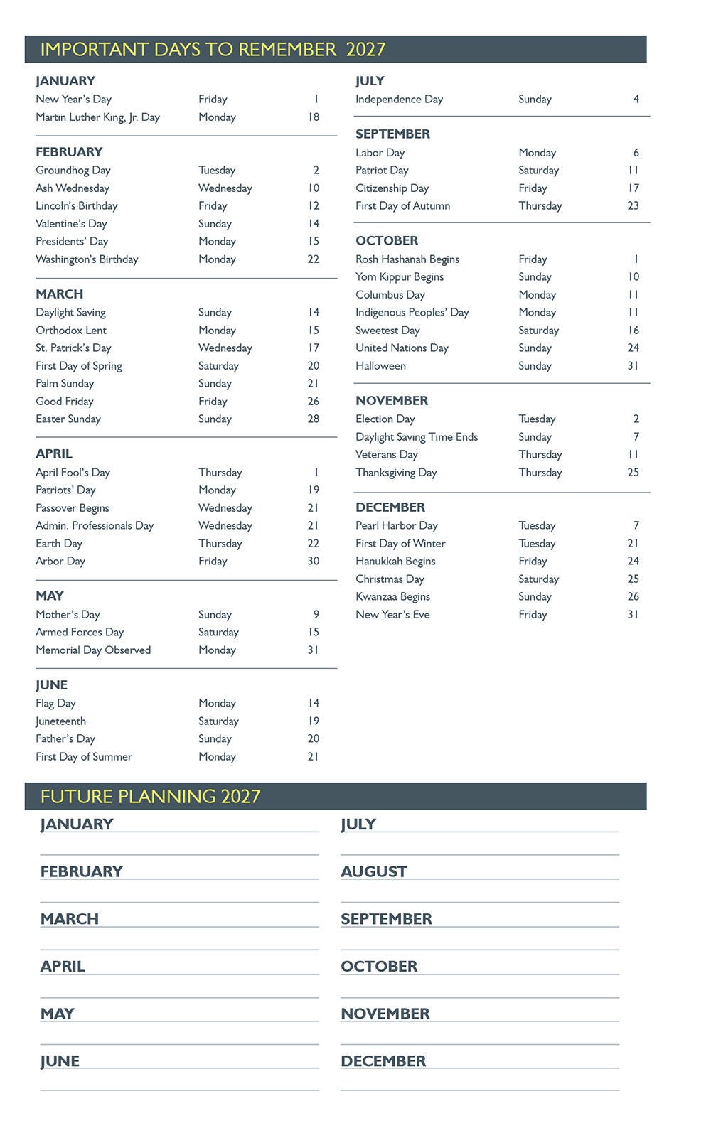 - Ruled daily blocks keep appointments, deadlines, and reminders organized and legible