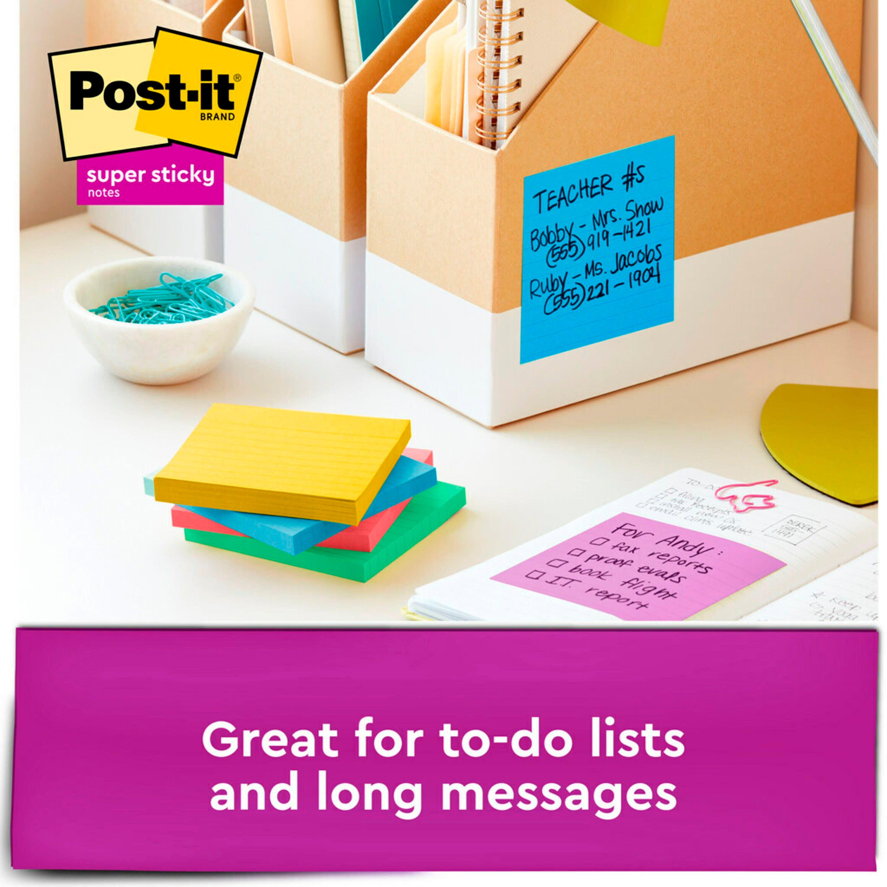 Post-it Super Sticky Notes, Lined, Playful Primaries, Pad of 90 Sheets, Pack of 6