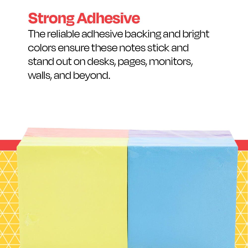 Reliable adhesive ensures each note sticks well to wood, plastic, and many other common surfaces