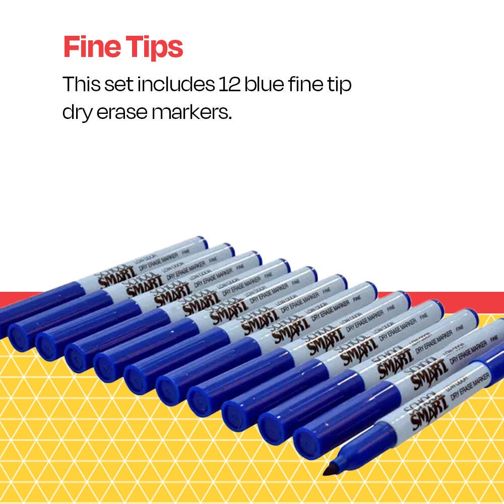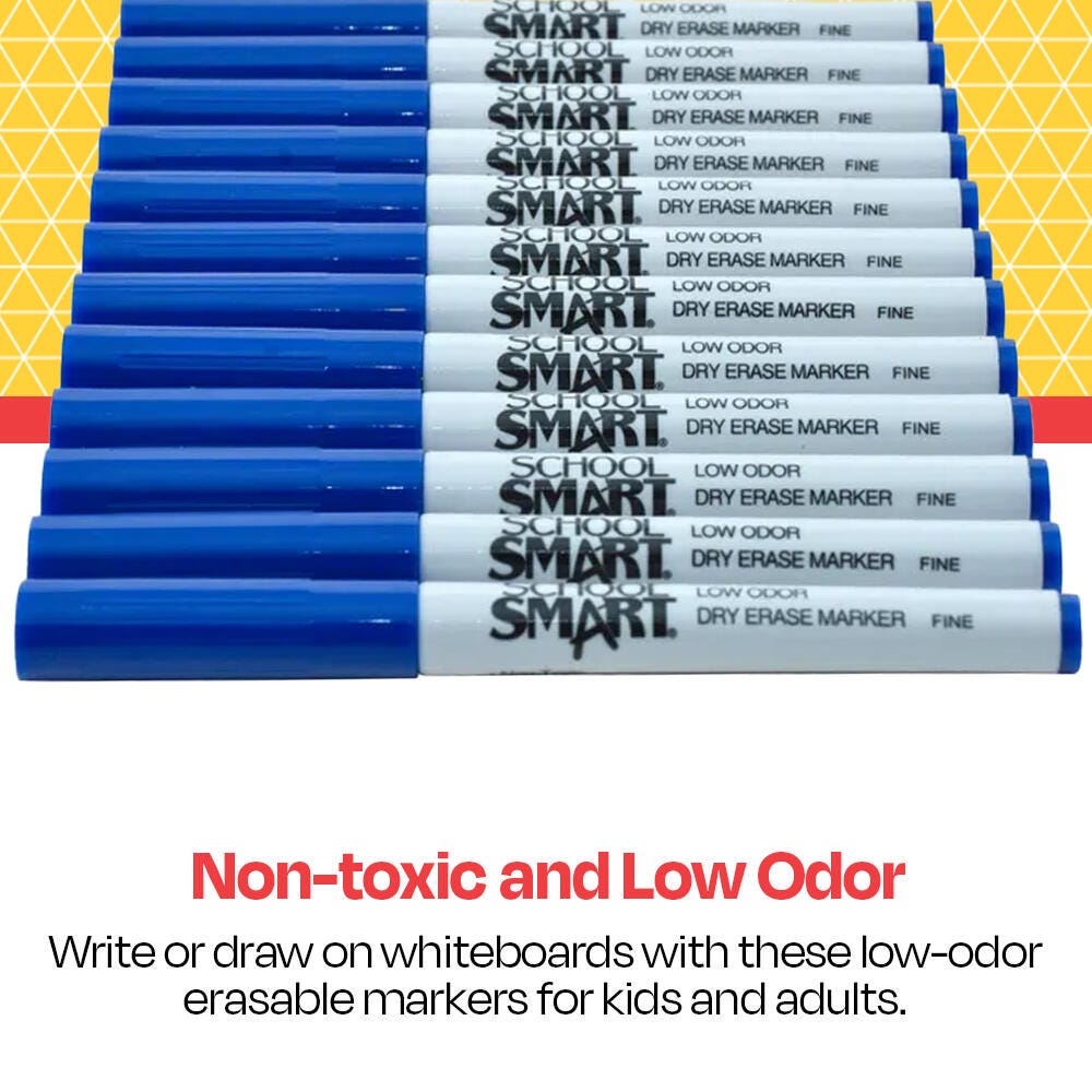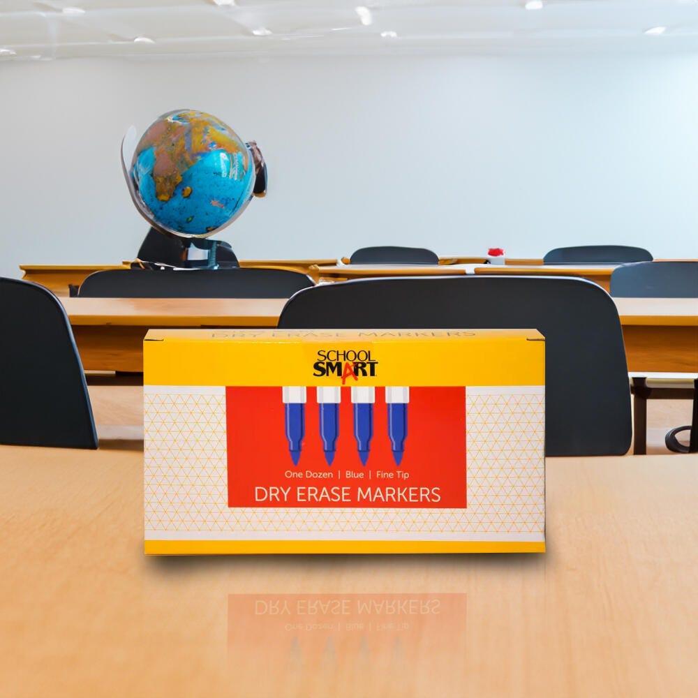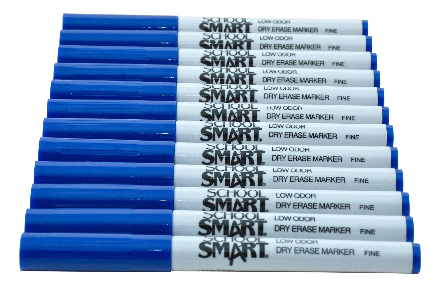 Stock up the classroom or office with School Smart fine tip dry erase markers. Our blue dry erase pens have a low-odor, non-toxic formula that’s easily erasable while providing smooth ink flow. Teachers, students, and office professionals love them.