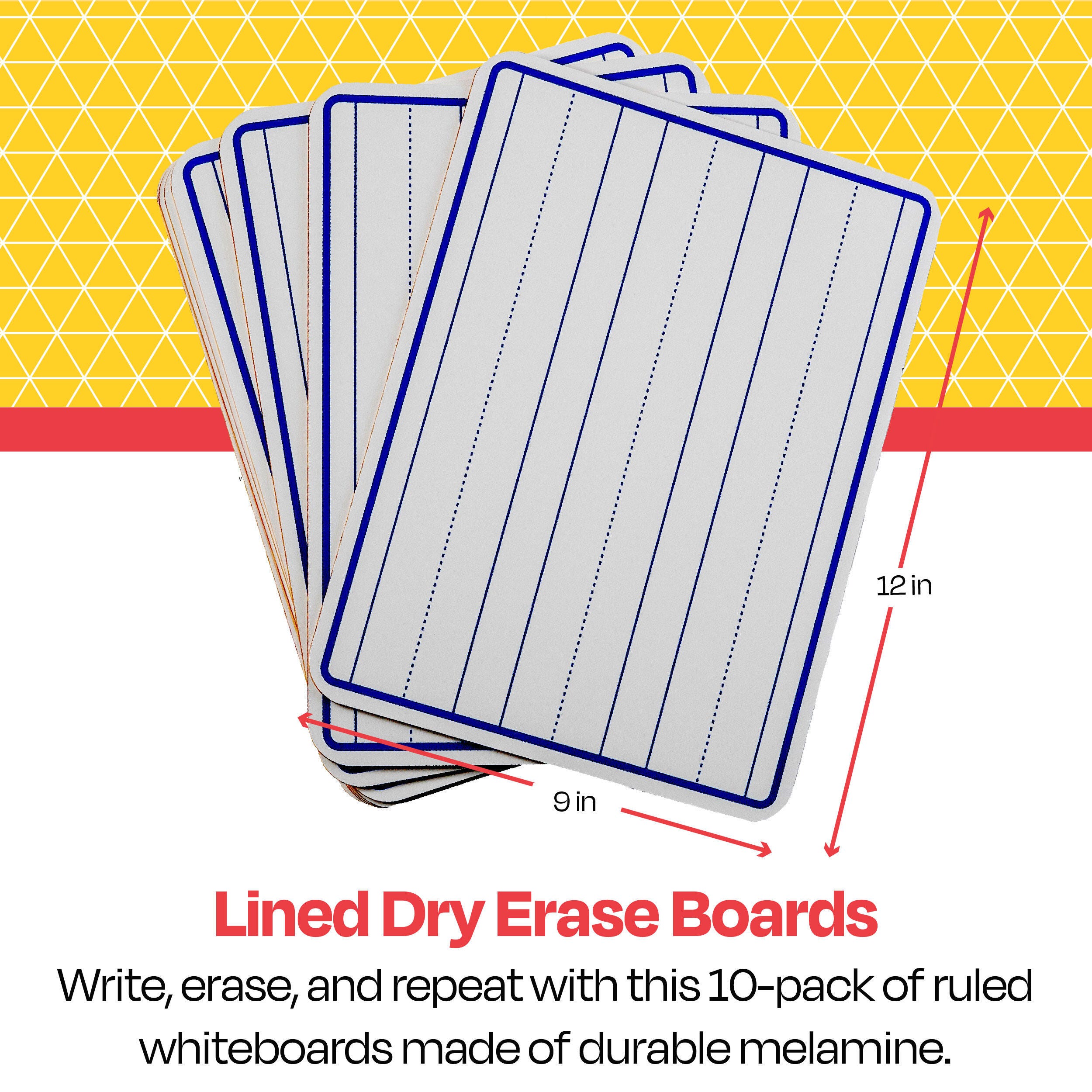 School Smart Lined Dry Erase Boards, 9 x 12 Inches, Pack of 10