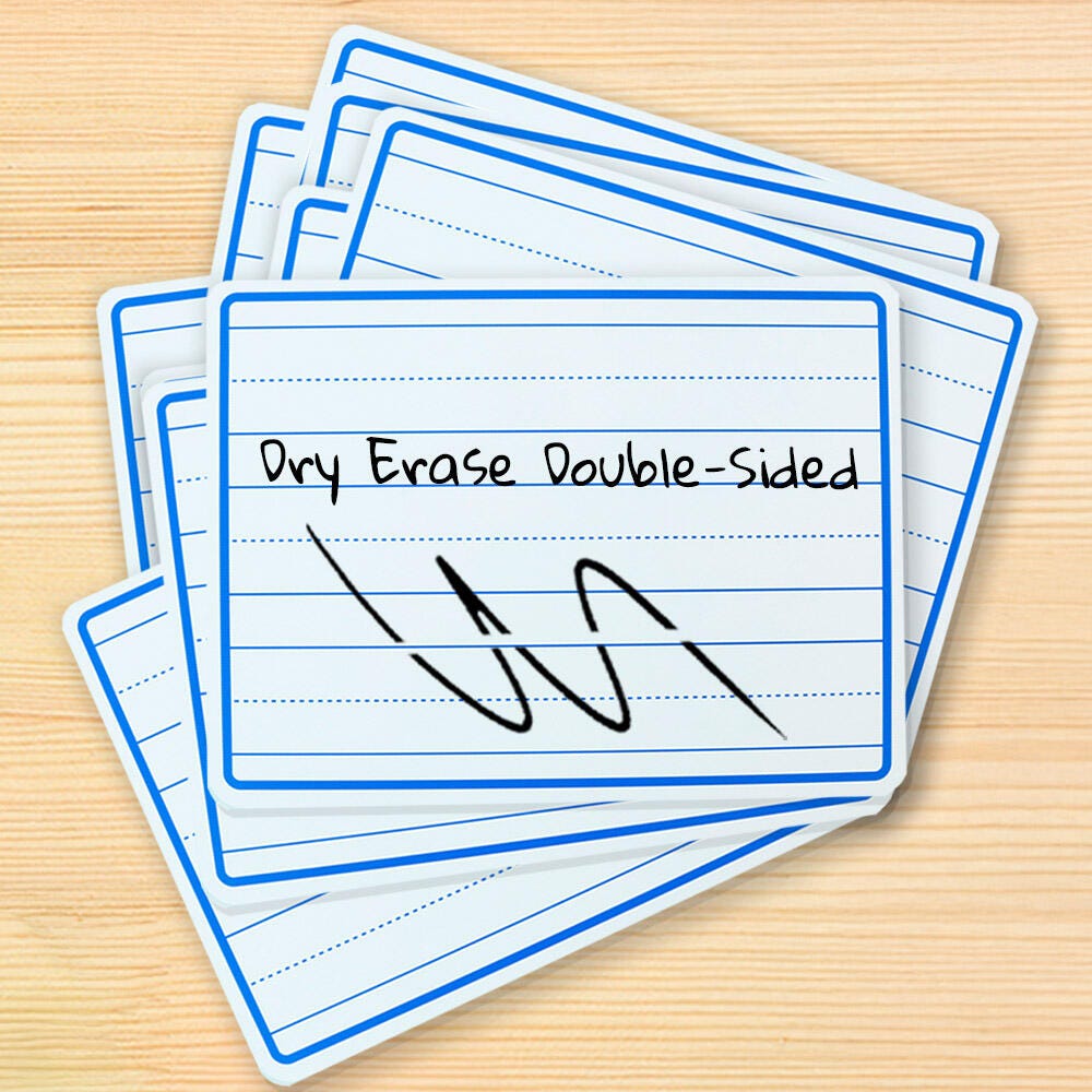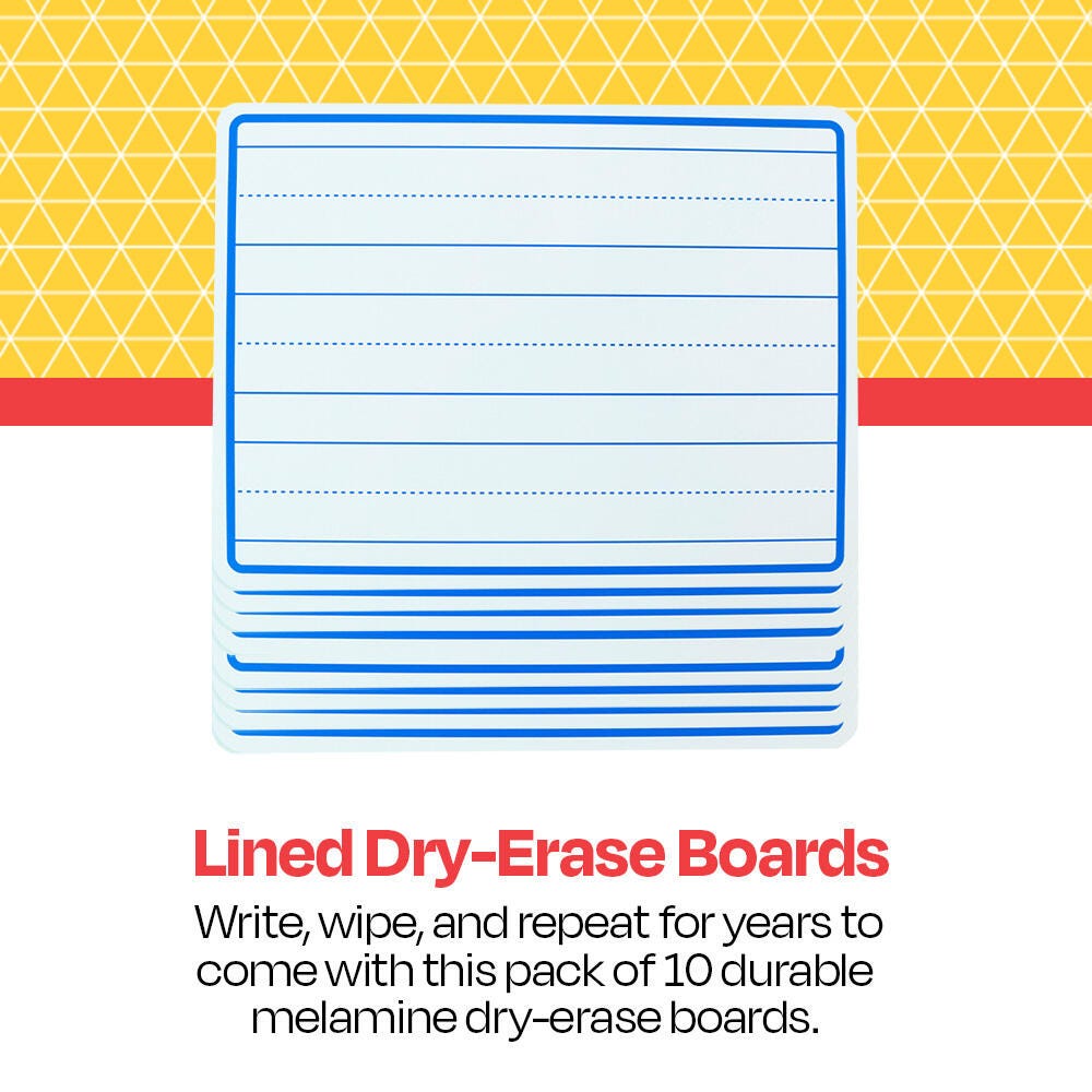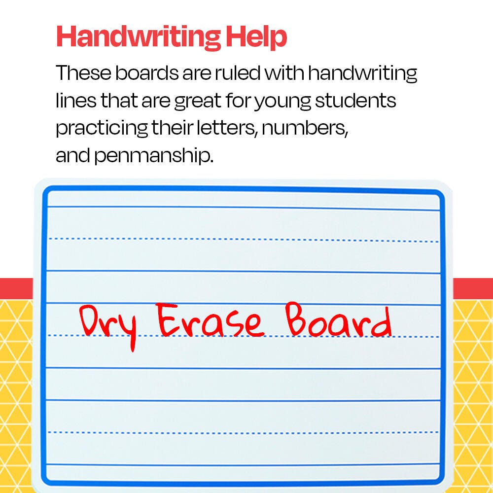 Reduce paper waste and prepare your classroom for handwriting lessons with this pack of lined write-on, wipe-off boards.
