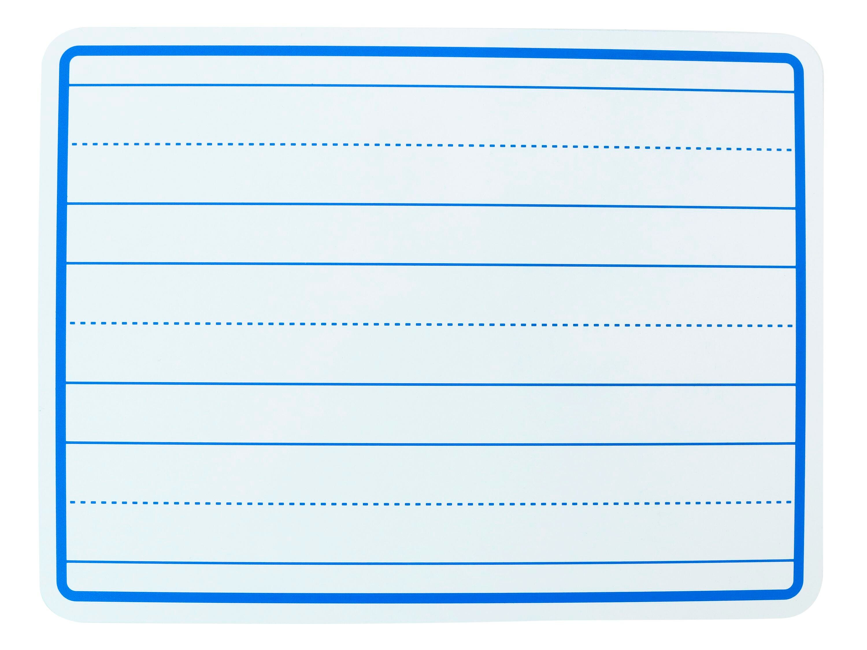 These School Smart double-sided lined student dry-erase boards are an excellent learning tool for any classroom! Each board measures 12 x 18 inches and is ruled like handwriting paper, with three lines in each set and a dotted middle line. They are great for early learners to practice writing upper and lowercase letters. Perfect for writing and math practice, these boards are lightweight, easy to clean, and ideal for interactive learning!Features