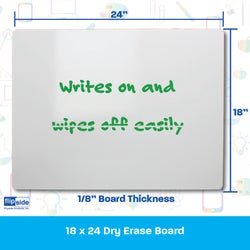 This unframed 18 x 24-inch white dry-erase board features a smooth, glossy surface that wipes clean easily without ghosting. Its lightweight 0.125" thickness makes it simple to mount, store, or carry from room to room. Ideal for brainstorming, teaching, or organizing daily tasks, this versatile board works great in homes, offices, classrooms, and more. Use it for reminders, lessons, or creative planning with dry-erase markers.Features