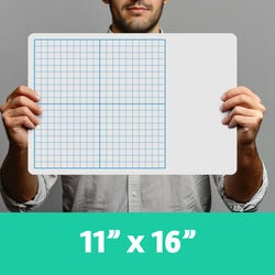 Graphing practice on dry erase boards saves paper. Bold lines separate board into quadrants each 10 squares by 10 squares. Boards feature non-ghosting dry erase surface with rounded corners and smooth edges for safety and comfort. Durable hardboard backing is warp and chip resistant. Each board measures 11 x 16 x 1/8 inches. Class Pack of 12.Features