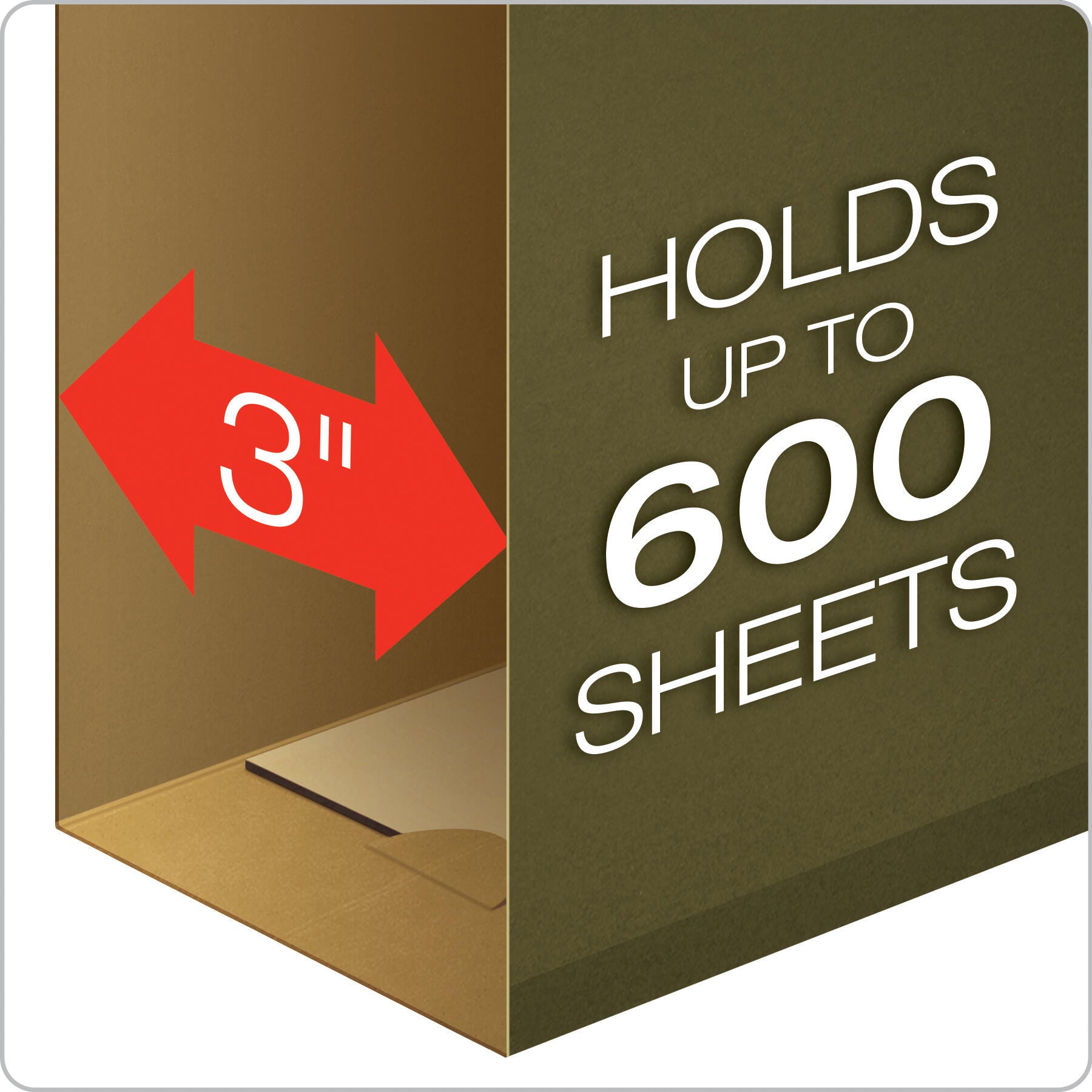 • Extra-capacity green folders expand up to 3 inches to hold up to 600 sheets per folder