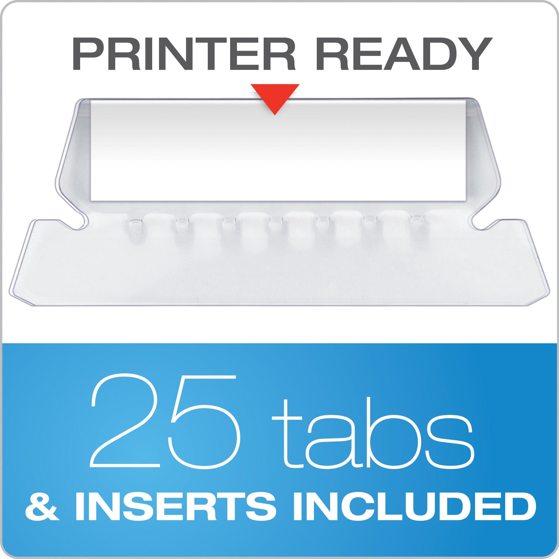 • Includes a printer-ready label sheet with 25 clear, 1/5 cut tabs for easy organization and identification