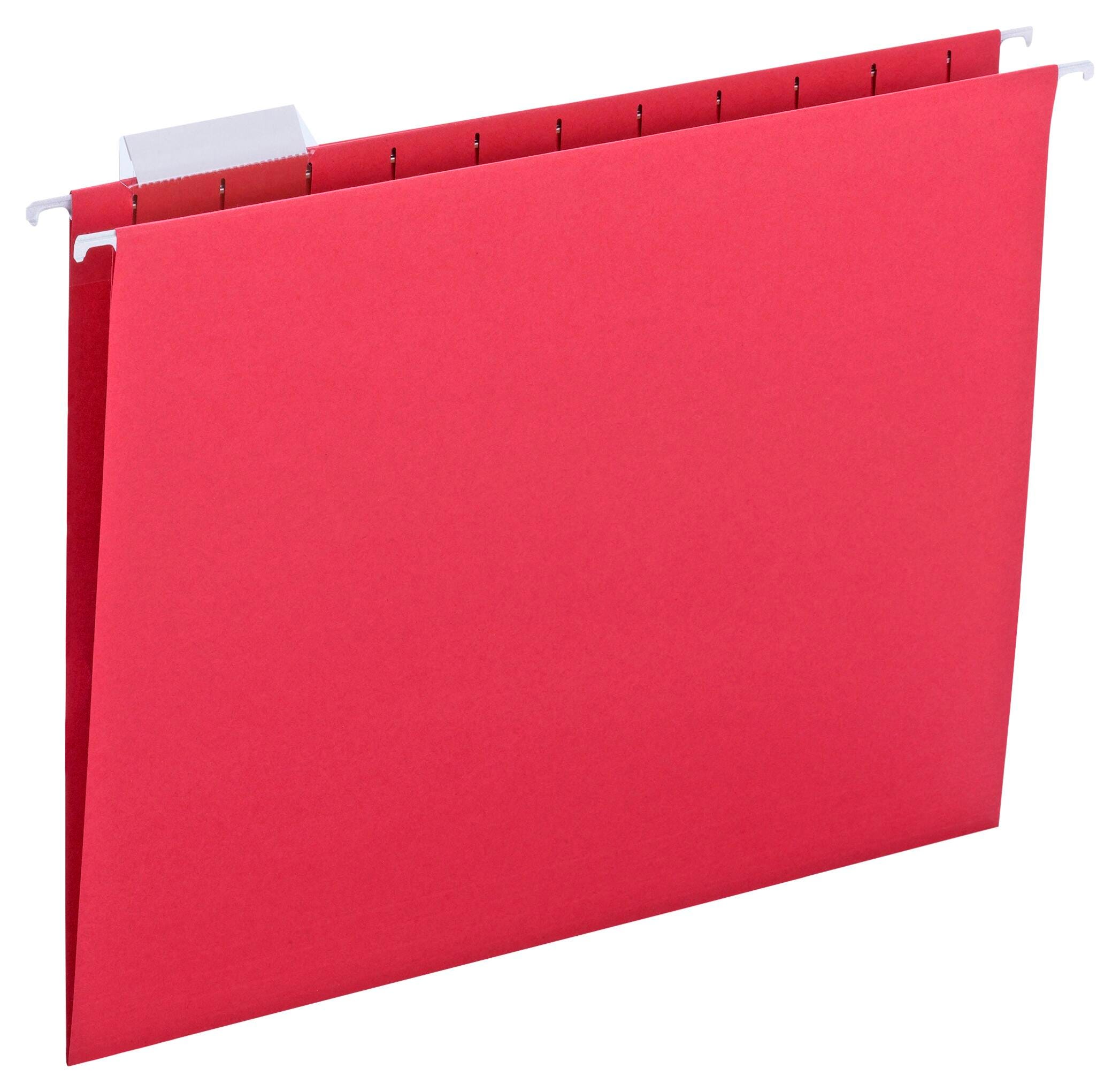 Smead Hanging File Folder, Letter Size, 1/5 Cut Tabs, Red, Pack of 25, Item Number 2049710