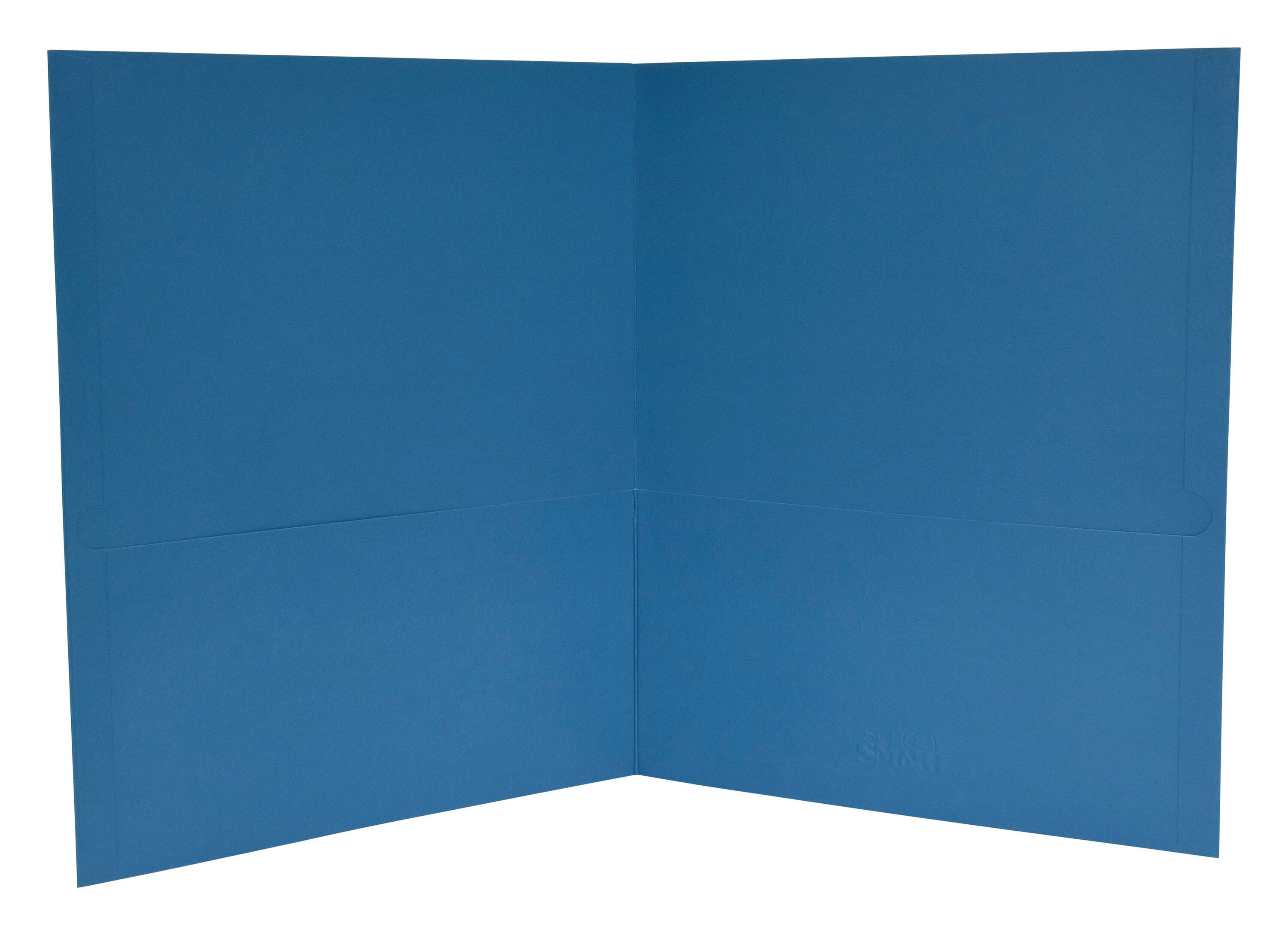 Organize your classroom, office, or home with the School Smart 2-pocket folders 25 pack. Our durable two pocket folders hold up to 100 sheets and come in a light blue color. Use these blank 2-pocket folders for report covers, business presentations, or traditional storage for important documents. An embossed leatherette texture lends quality for both professional, school, and personal needs. The double pockets are closed on three sides (outer edge, top, and bottom) to ensure your papers stay securely in place, while double-reinforced edges provide extra durability when opening and closing.