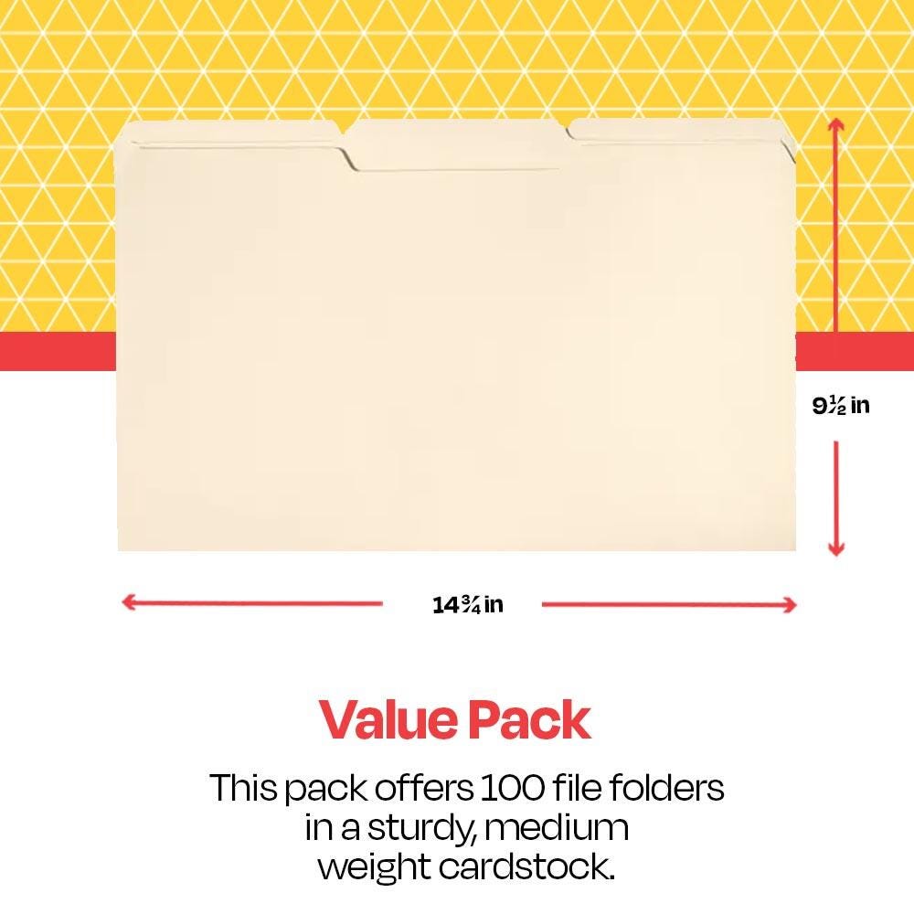 Use the legal size manila file folders to organize important papers in filing cabinets at schools, offices, and homes