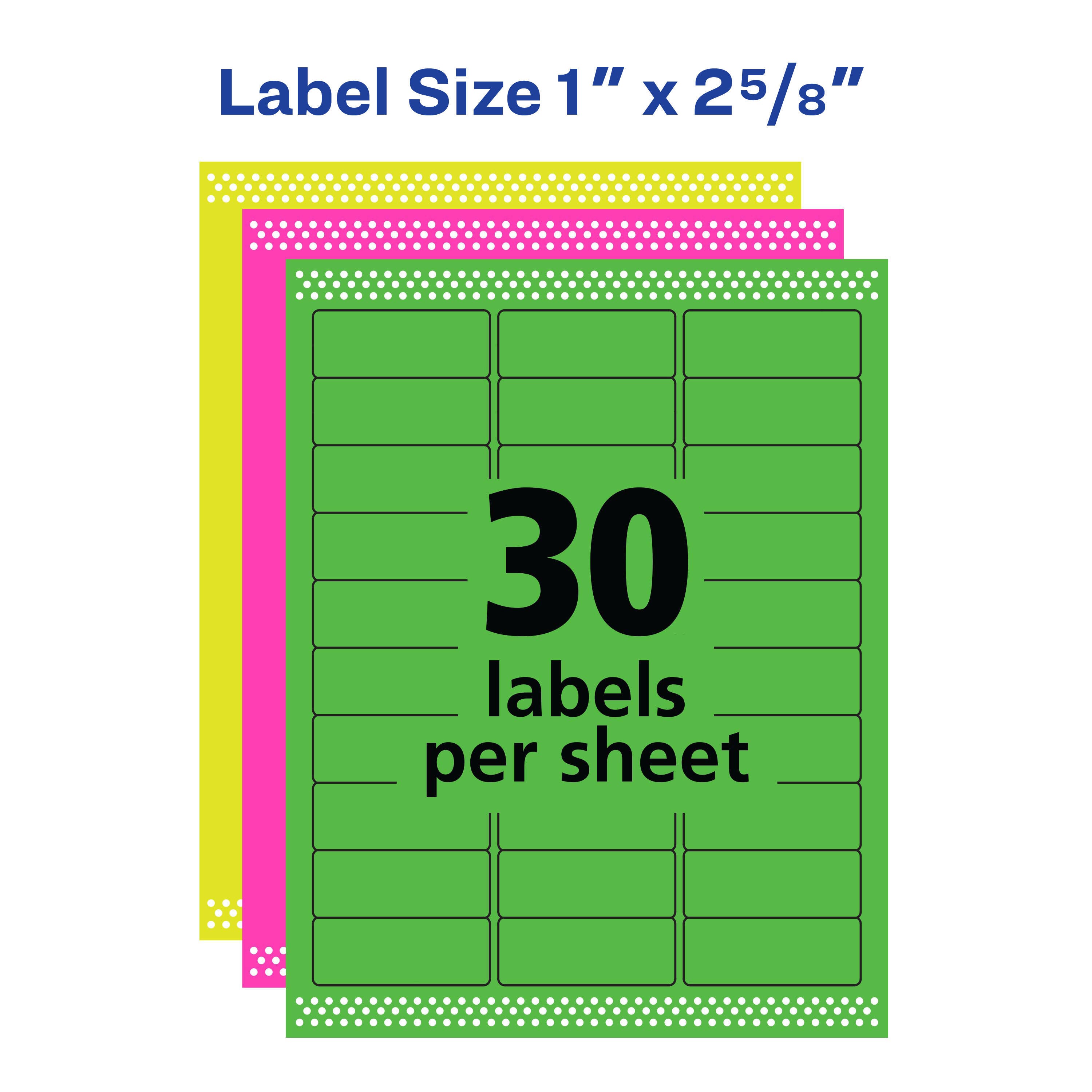 Avery Permanent Laser Labels, 1 x 2-5/8 Inches, Assorted Neon, Pack of 450