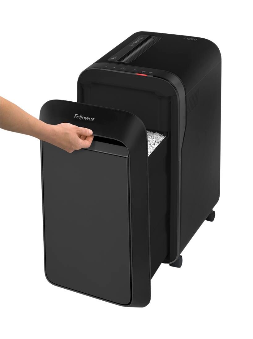 Features a patented 100% Jam Proof System that automatically detects and powers through jams so you don't have to. Shred up to 20 sheets per pass into small micro-cut particles (5/32" x 1/2"; Security Level P-4) for enhanced protection. Includes SafeSense Technology, which automatically monitors and immediately stops shredding when hands or pets are too close. Shreds continuous for up to 20 minutes so medium-sized shred jobs can be completed in one sitting. SilentShred offers ultra-quiet performance for shared workspaces. The 8 gallon pull-out waste bin keeps shredded particles contained so workspaces remain clean.