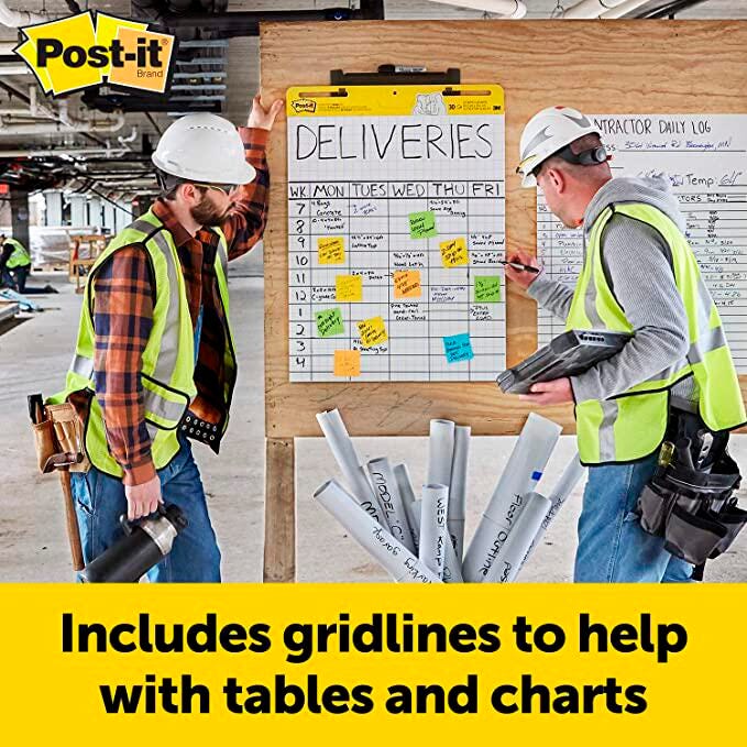 Post-it Easel Pads, with sheets that can stick almost anywhere, foster imaginative thinking and helps lay the foundation for future growth. Post-it Easel Pad sheets feature premium, bleed-resistant paper that sticks to most surfaces and can be repositioned again and again, without surface damage. The sturdy backcard features a handle for easy portability and universal slots to fit most easel stands