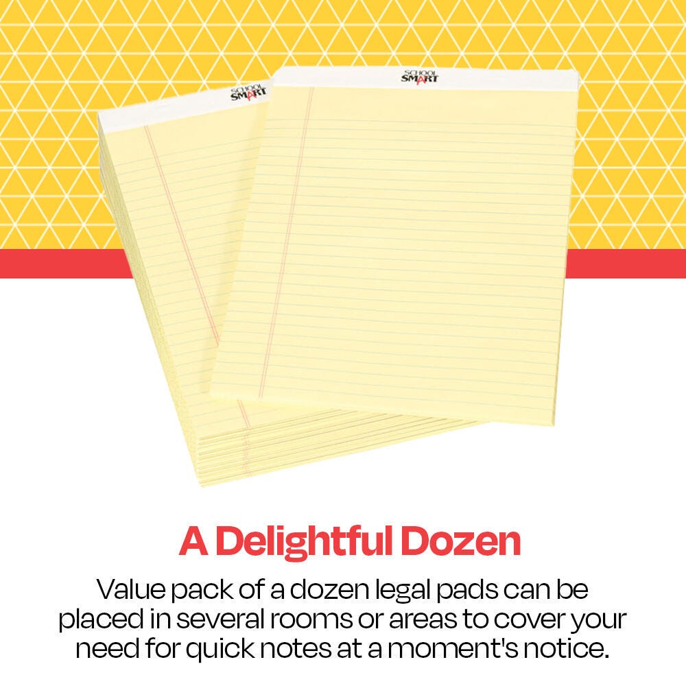 School Smart Legal Pads, 8-1/2 x 14 Inches, 50 Sheets Each, Canary, Pack of 12