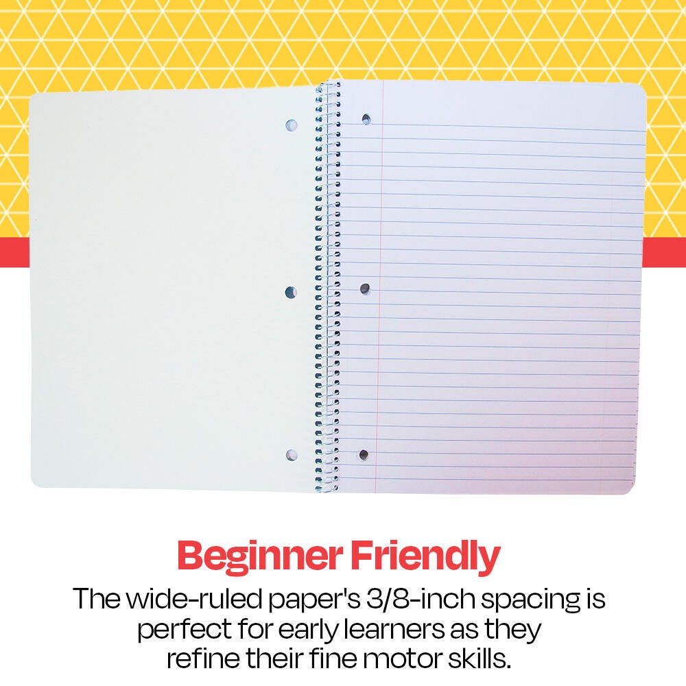 Beginner-friendly wide-ruled paper is ideal for elementary school students and provides more space for larger letters