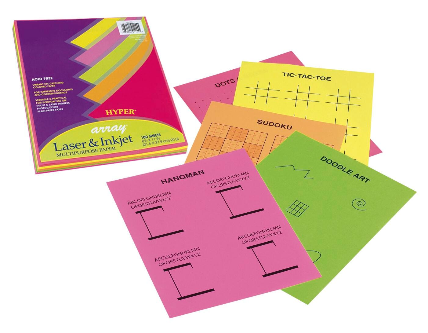Array Multi-Purpose Paper, 8-1/2 x 11 Inches, 24 lb, Assorted Hyper, Pack of 100