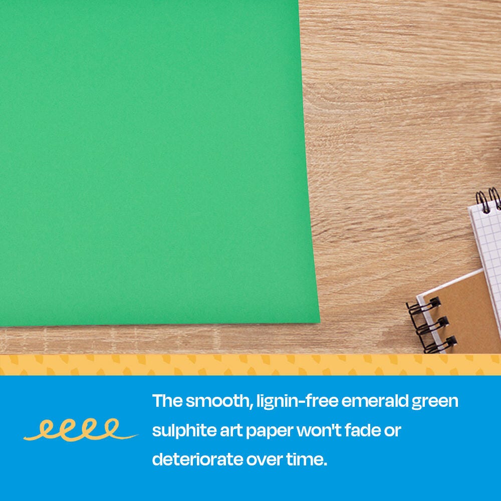 The smooth surface of this sulphite art paper makes it a higher-quality alternative to regular construction paper. Bright, intense colors maintain a uniform tone throughout the entire surface of the sheet. No mottling or streaking as in some lesser quality papers. This pack delivers 50 sheets of emerald green paper, each measuring 12 x 18 inches.