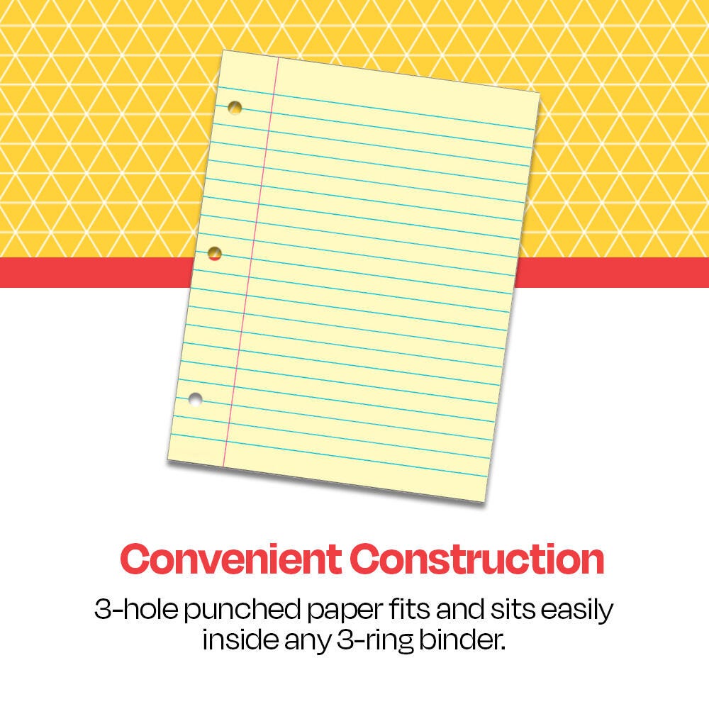 School Smart 3-Hole Punched Filler Paper, 8-1/2 x 11 Inches, Yellow, 100 Sheets