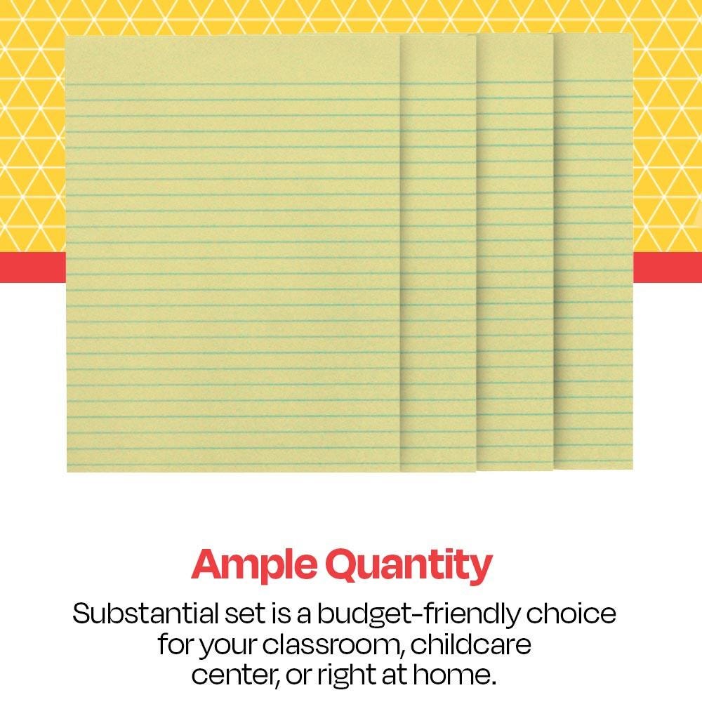 School Smart yellow sulphite paper is 3/8 ruled the short way on both sides with no margin. Basis paper weight is 15 lbs. This versatile paper has many uses such as note taking, brainstorming, composing and many more. The gentle yellow hue of the paper can be easier on sensitive eyes than stark white.