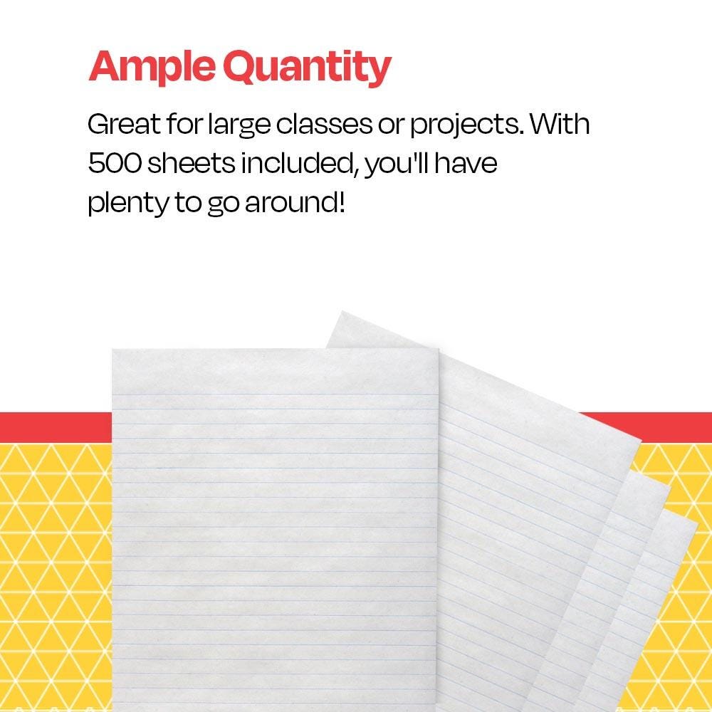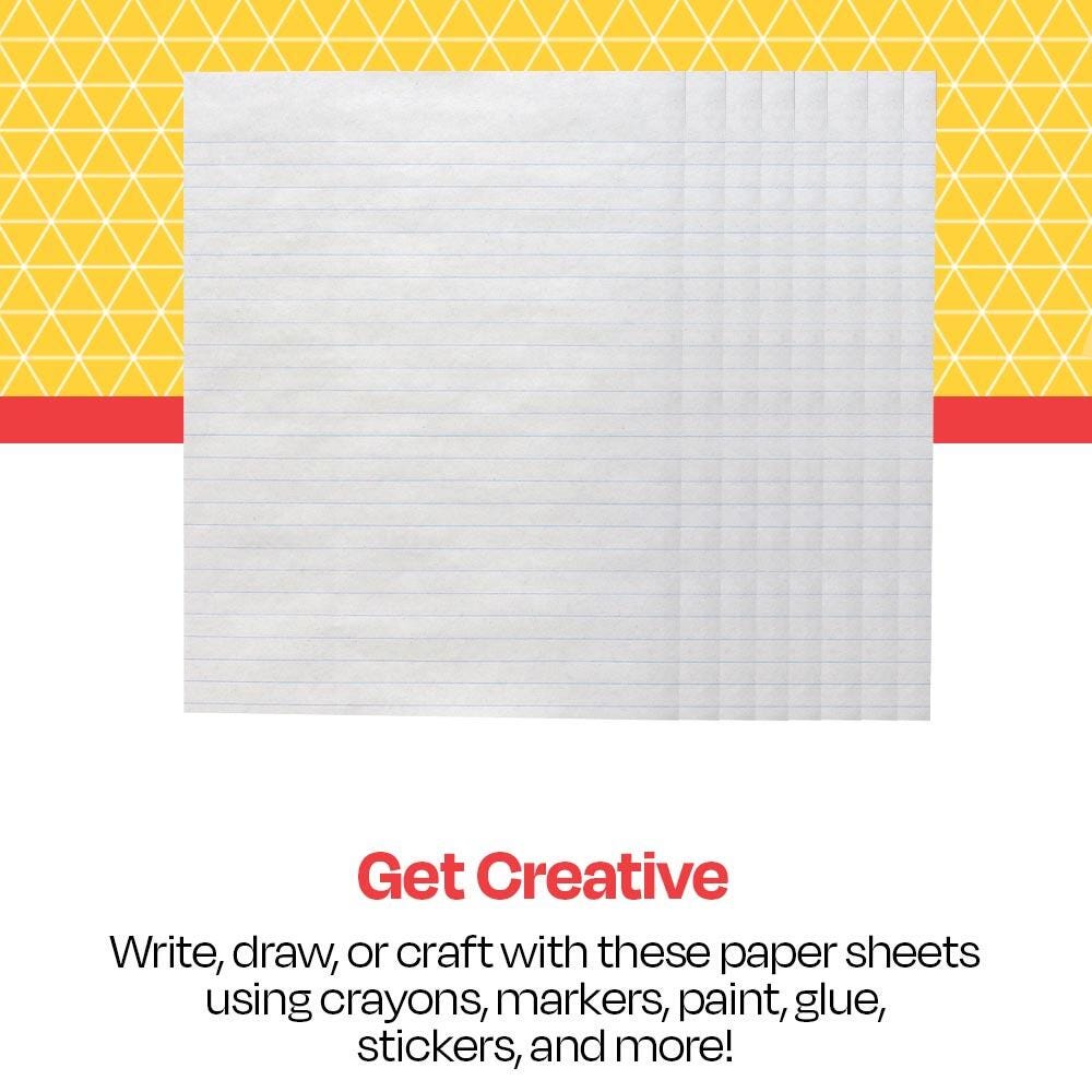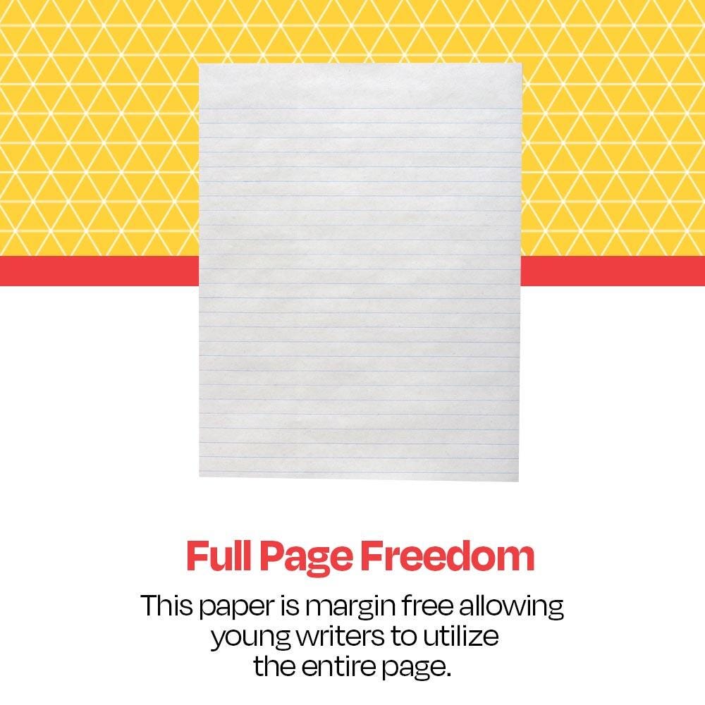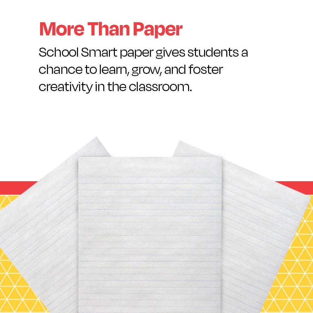 This School Smart Newsprint theme paper is approved for use throughout California and is 3/8 inch ruled the long way on both sides. This quality paper costs far below what you would pay for sulphite paper. This versatile paper can be used for a wide variety of activities. Appropriate for use with grades 4 and up.