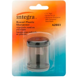 Integra Round Pencil Sharpener is single-hole aluminum sharpener with tempered steel sharpened blade. This sharpener has plastic canister and available in black/smoke color.