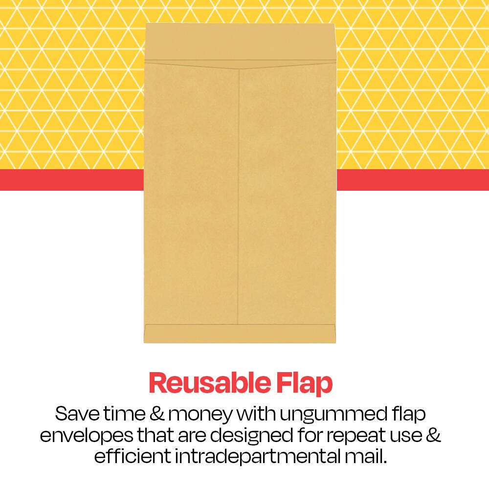 Ungummed flaps offer a non-permanent closure if tucked or can be used with your prefered adhesive