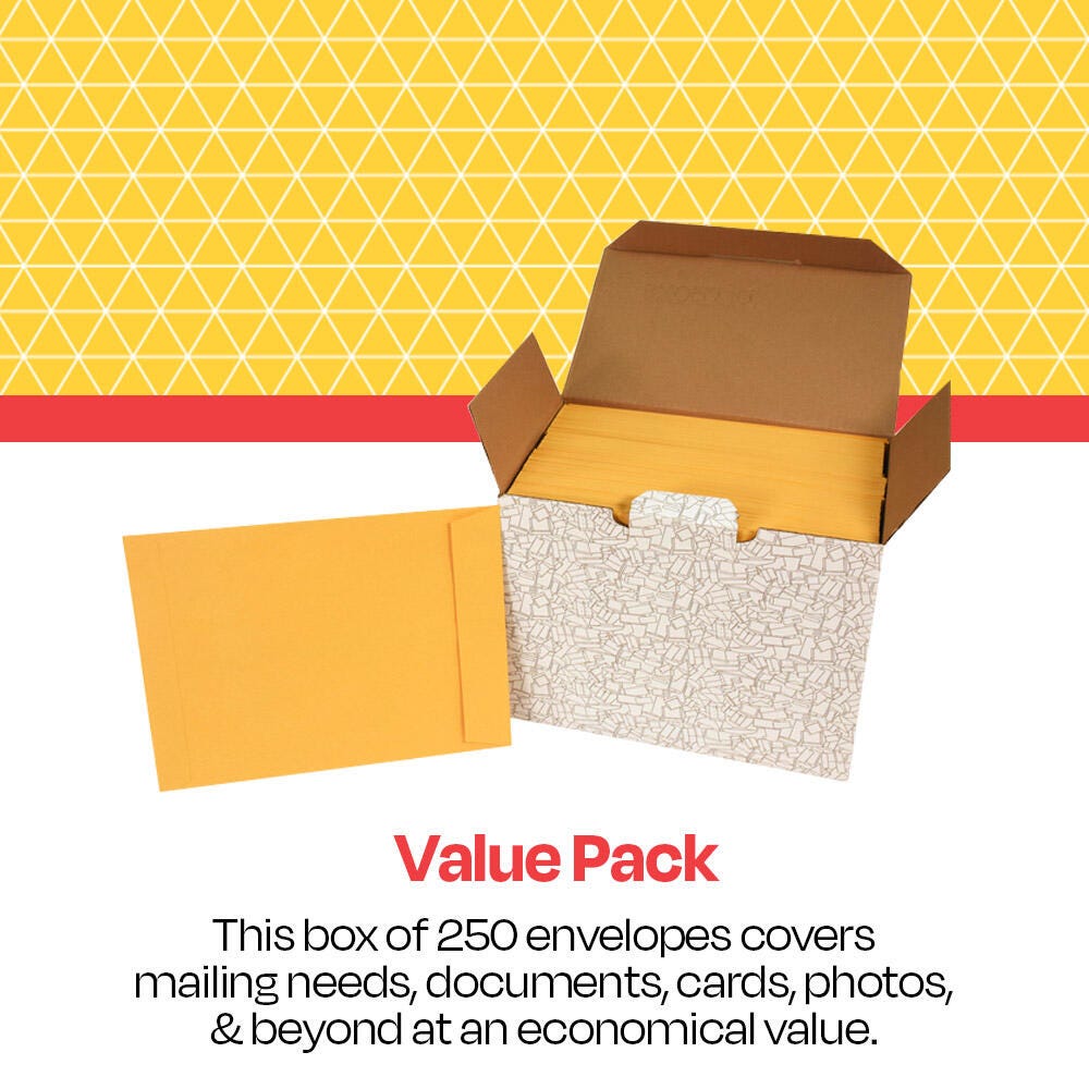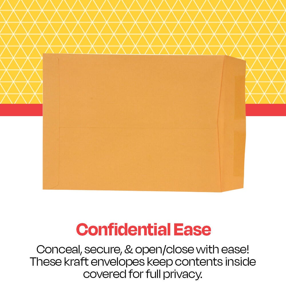 In need of strong, sturdy catalog envelopes that are built to last? Look no further than the No Clasp Envelopes from School Smart that are ideal for catalogs, brochures, and heavyweight mailing. Each secure envelope is produced using 28 lb brown kraft paper with reinforced seams that resist wear and tear. The envelope flaps have a fully gummed seal and are packaged in a sturdy box. Each envelope measures 9 x 12 inches. Sold as a pack of 250.