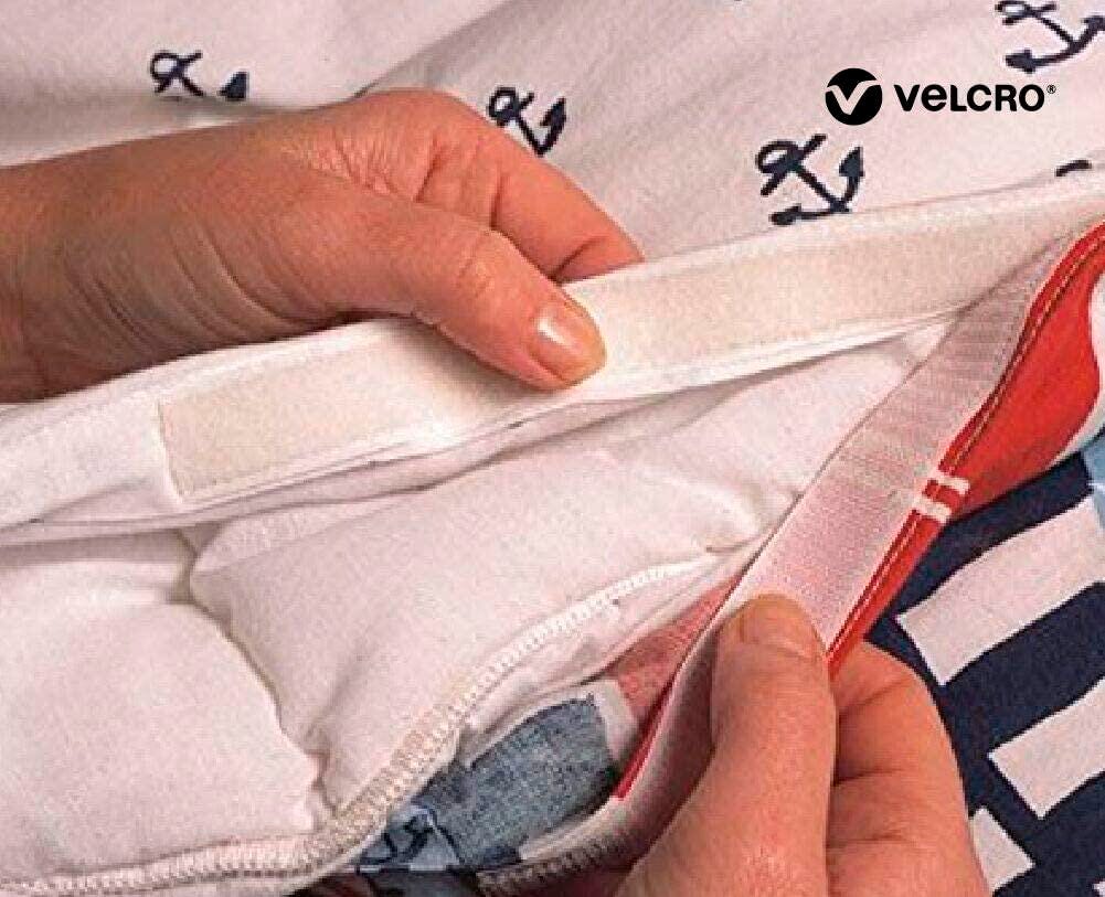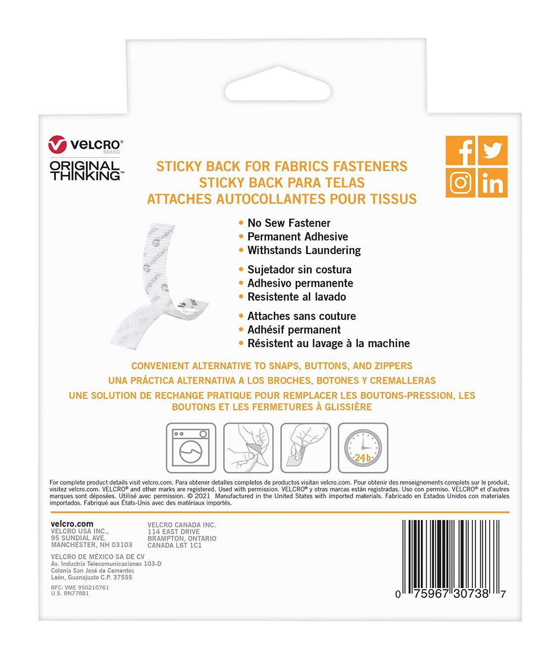 No sew VELCRO Brand fabric tape for clothes requires no sewing, ironing or gluing; used as hem tape for pants. Cut to length adhesive strips for fabric. Fabric double sided VELCRO Brand no sew tape with adhesive for clothing is designed for use on cottons, polyester, poly blends, and nylon; this fabric tape is not for use on soft plastics or flexible vinyl.