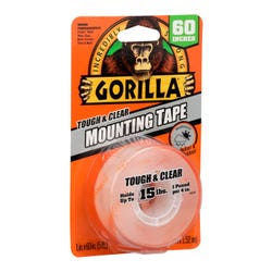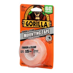 Gorilla Tough & Clear Mounting Tape provides a quick and easy solution to mount and repair. This industrial strength tape conforms to smooth and rough surfaces, delivering an instant, crystal clear and weathproof bond.